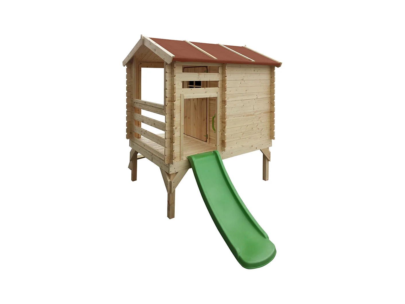 Timbela M550A - Houten huis voor kinderen - 1,1m2 / 175x146xH212cm - met glijbaan