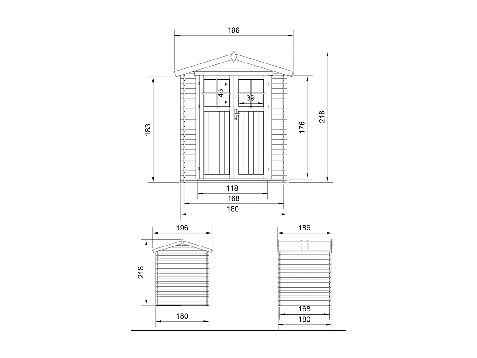 Houten tuinschuurtje zonder vloer - 2.82 m² / 196x186xH218 cm - M320F