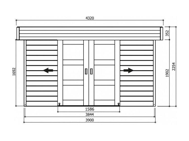 Houten tuinhuis "Stockholm" 11.27 m² met dubbele schuifdeuren en ondoorzichtig acrylglas