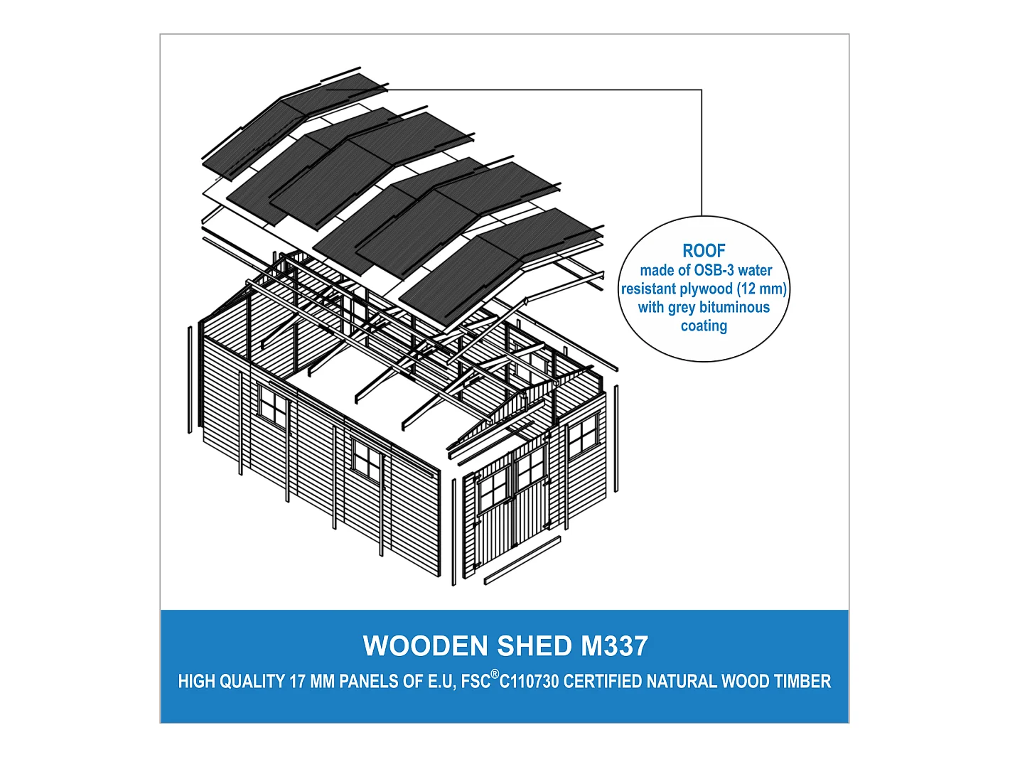 TIMBELA M330 - Houten tuinschuurtje 15,84 m2 - werkplaats voor gereedschaps- en fietsenstalling