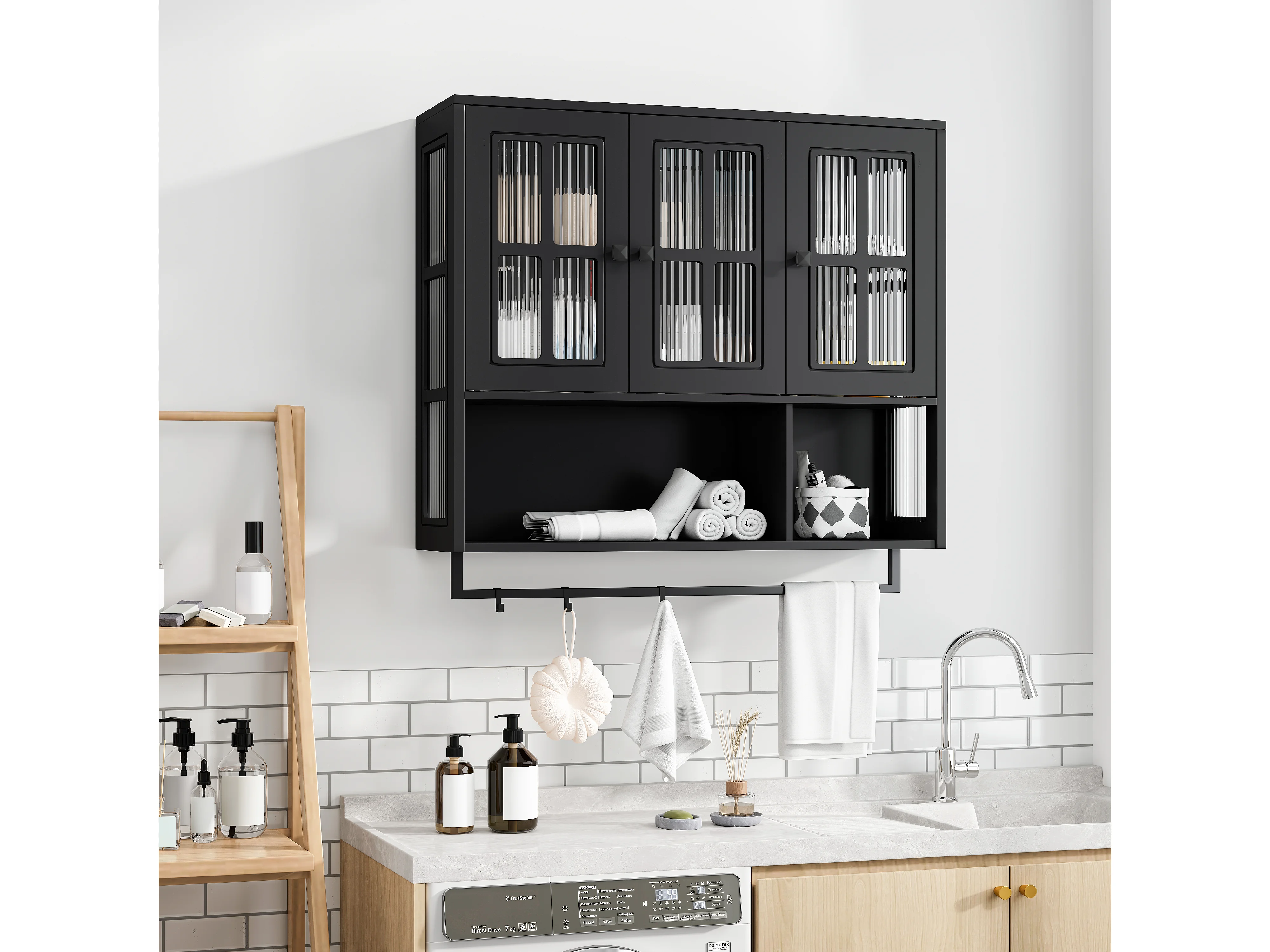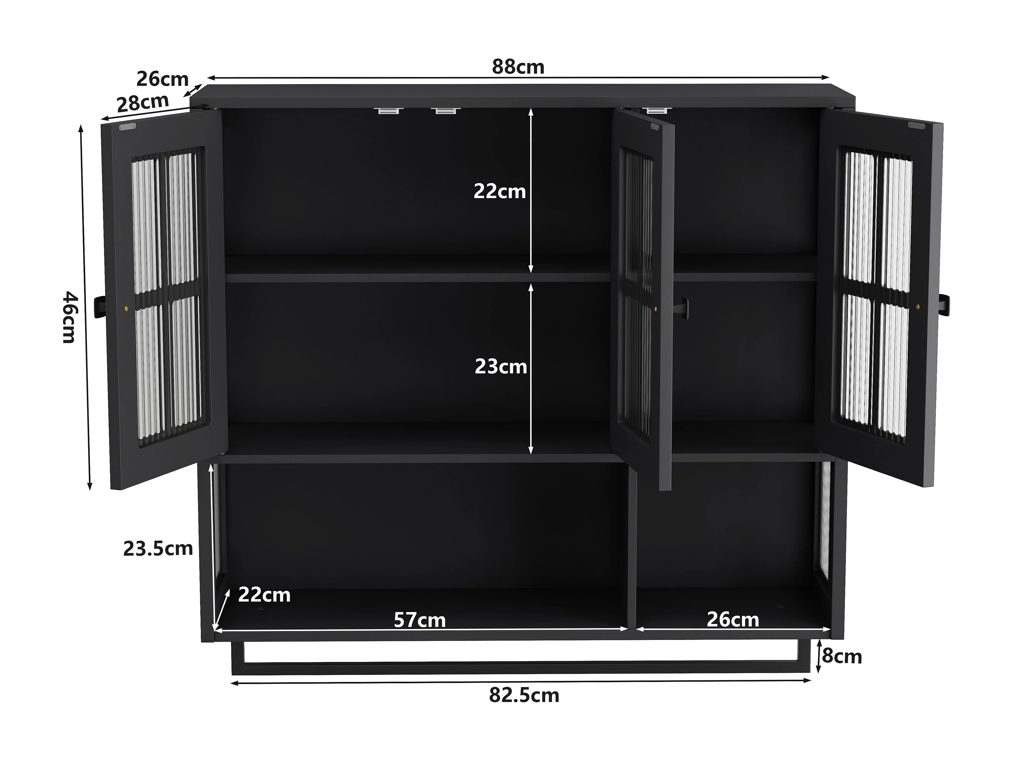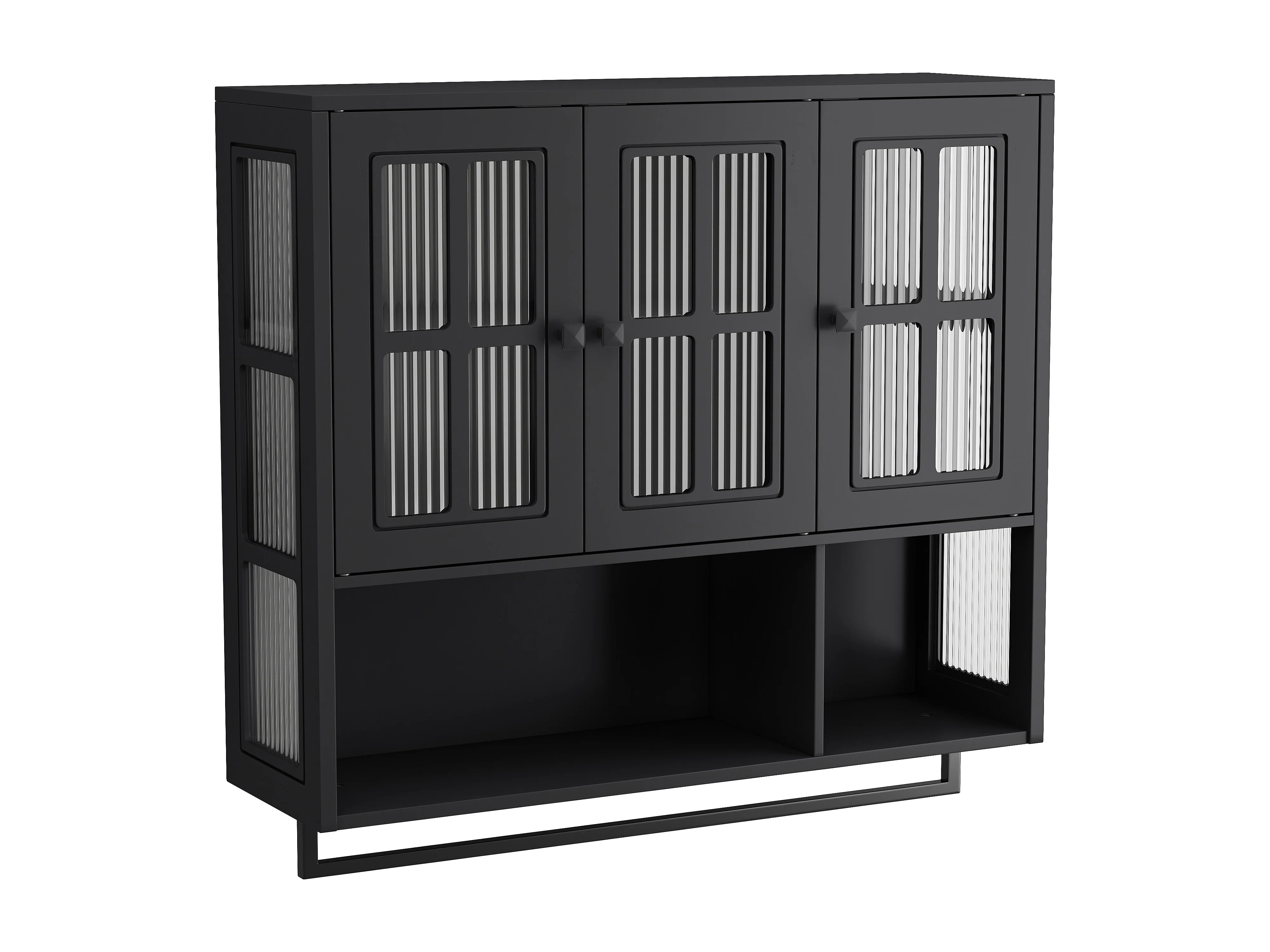 Houten wandkast met 3 deuren - Voor hal, woonkamer, badkamer, zwart