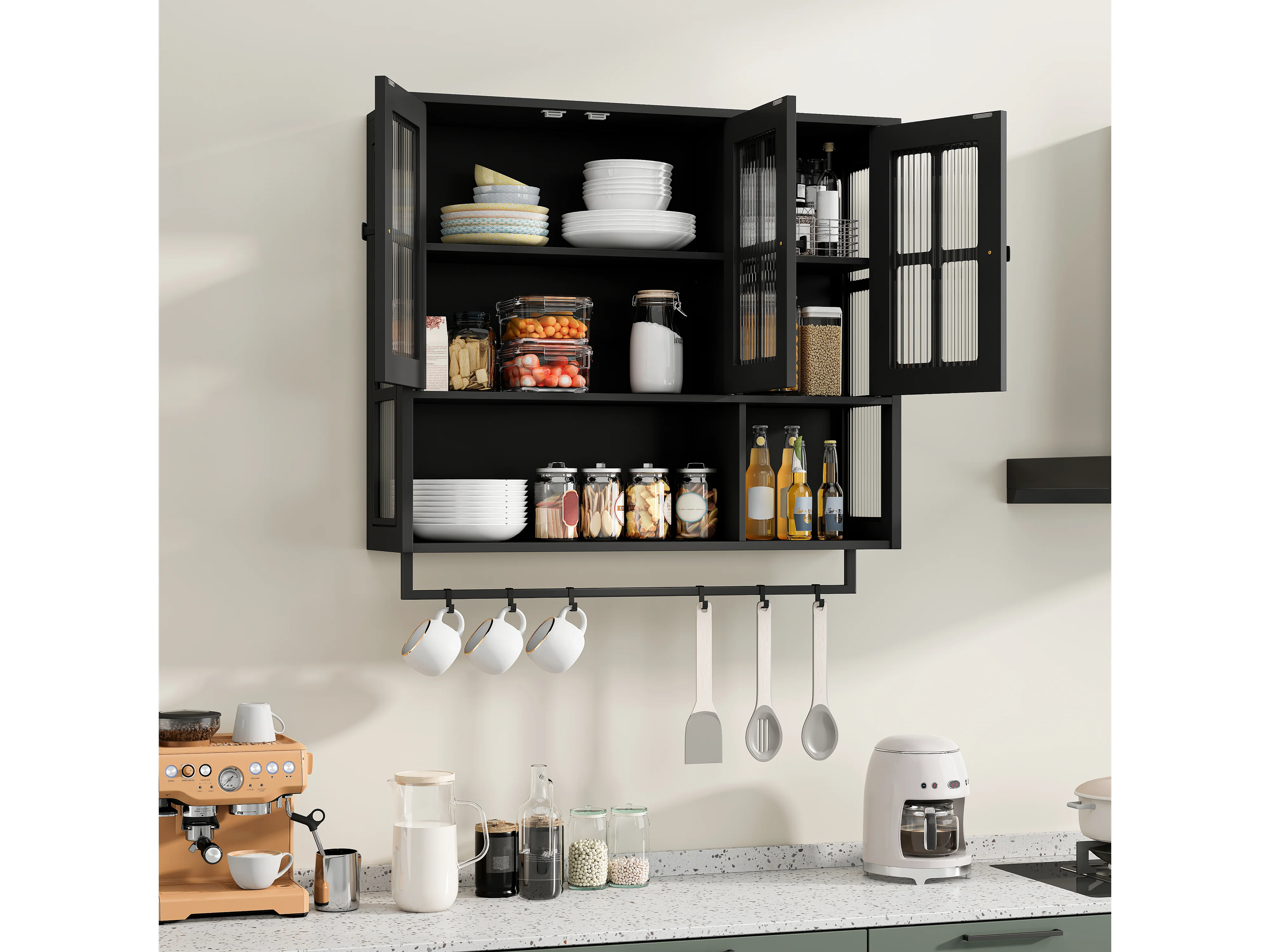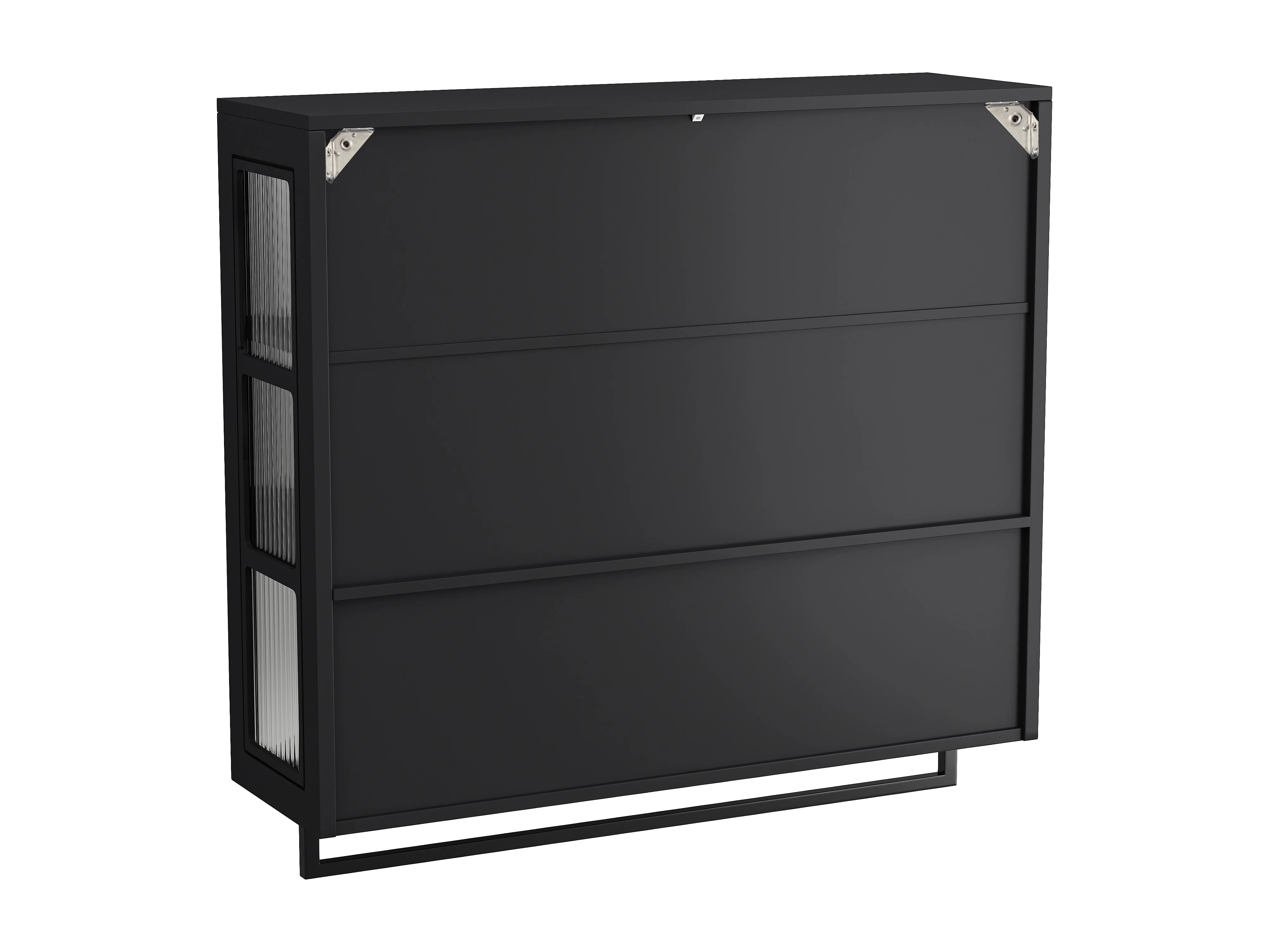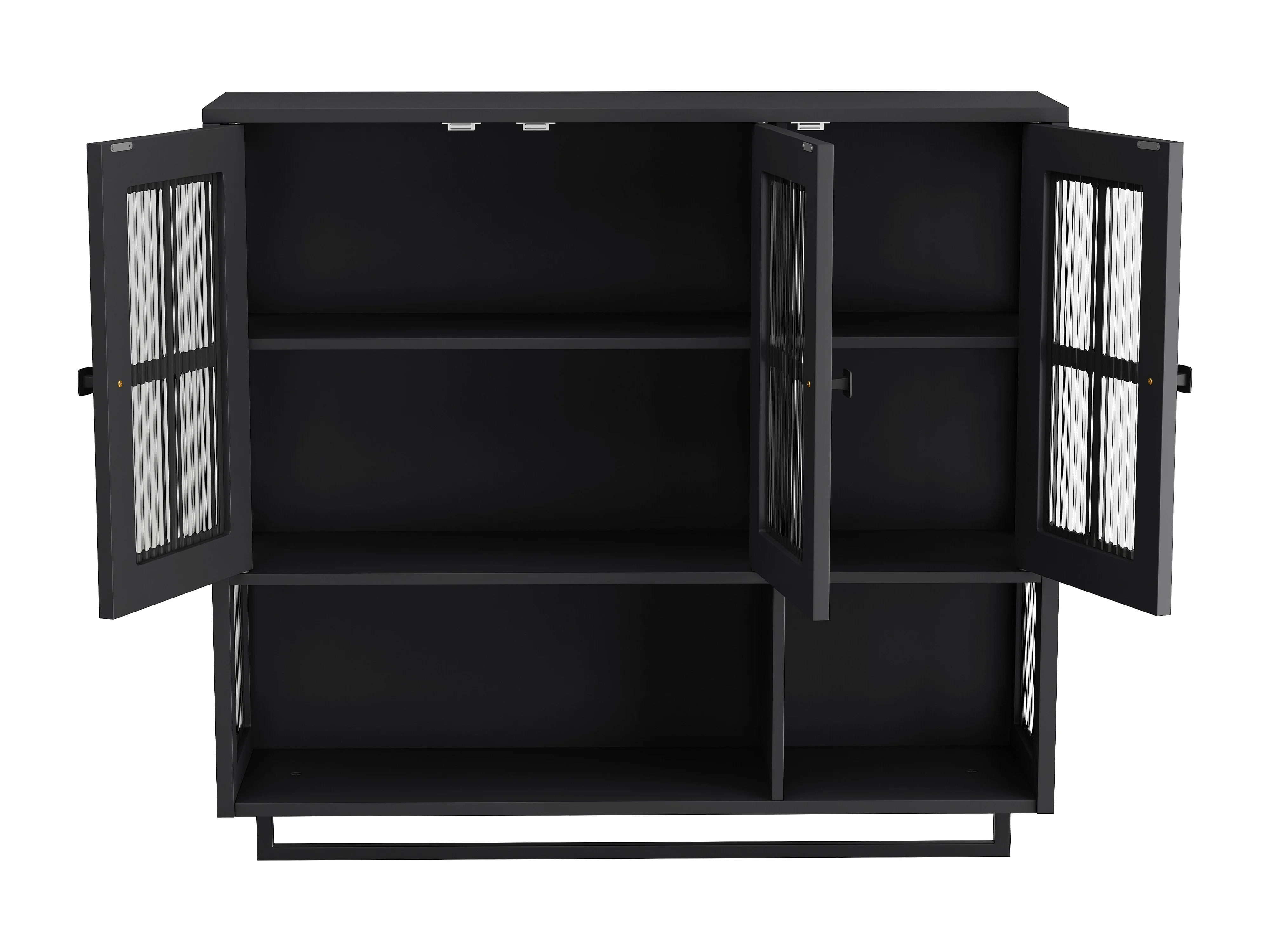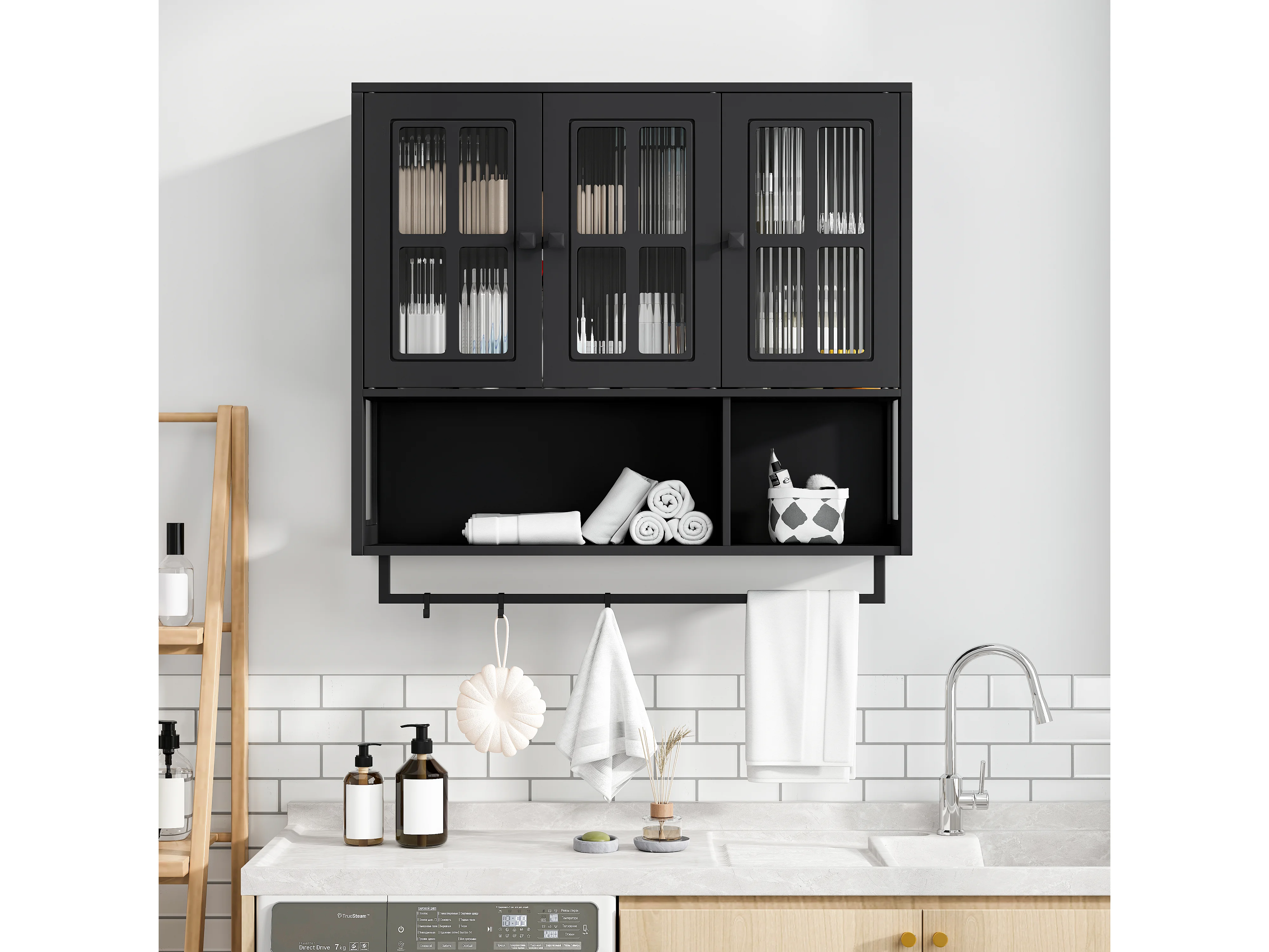 Houten wandkast met 3 deuren - Voor hal, woonkamer, badkamer, zwart