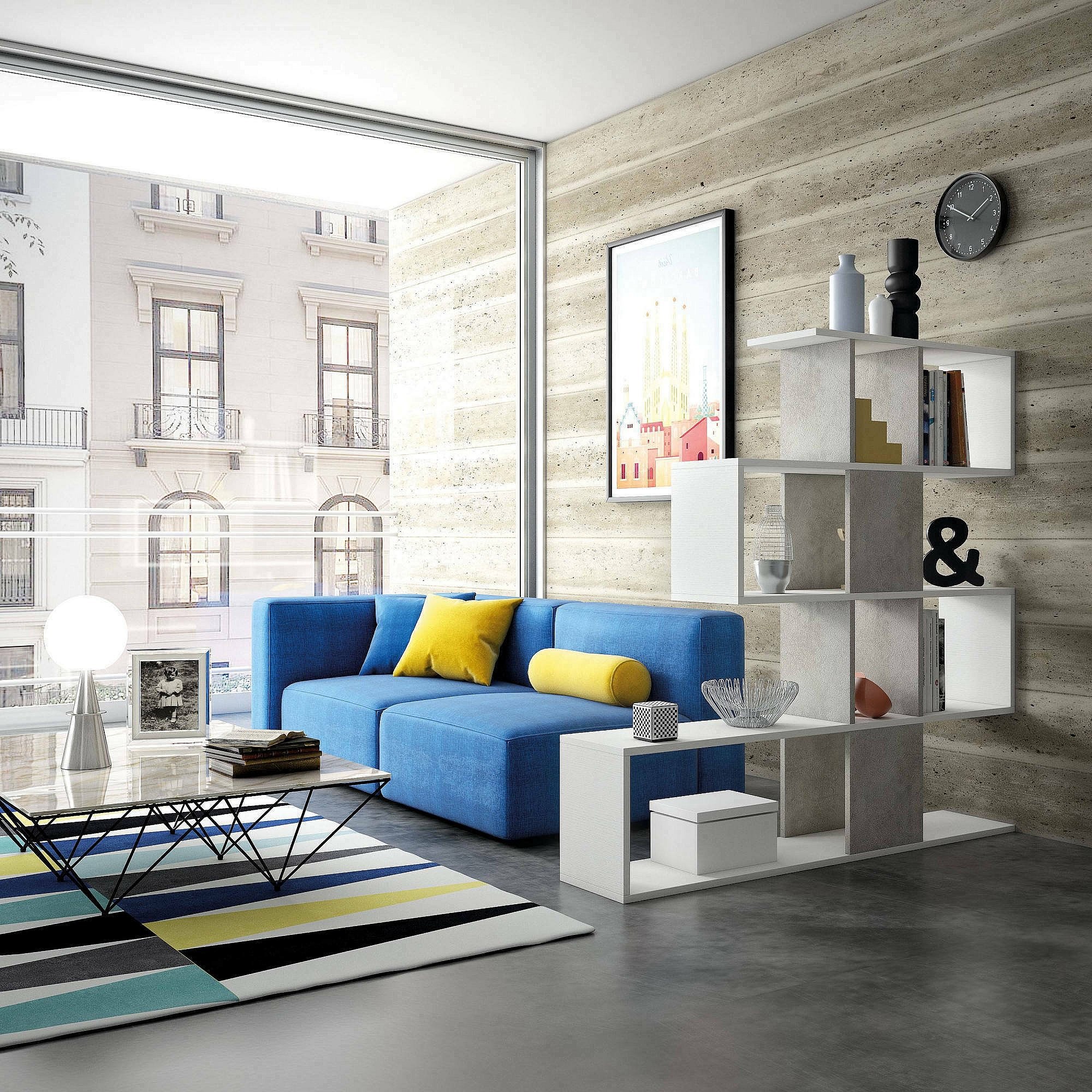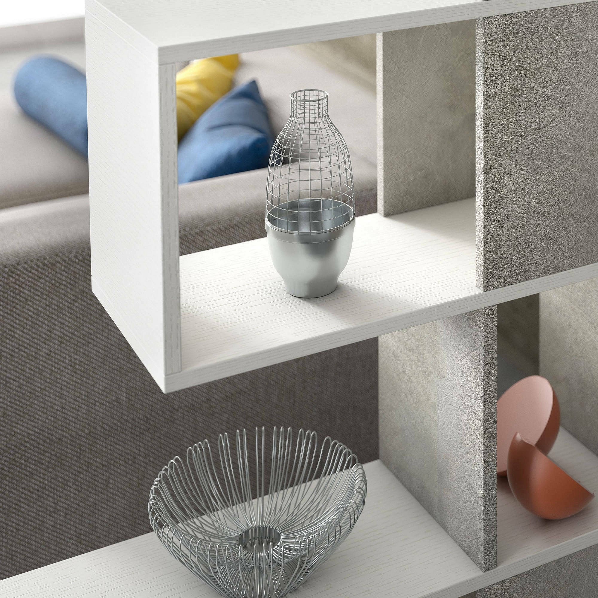 Dfav boekenkast, Dubbelzijdige bibliotheek met 5 planken, Zigzag plank voor boeken, Bovenkast met planken, 100% Made in Italy, 145x29h145 cm, Wit en Cement