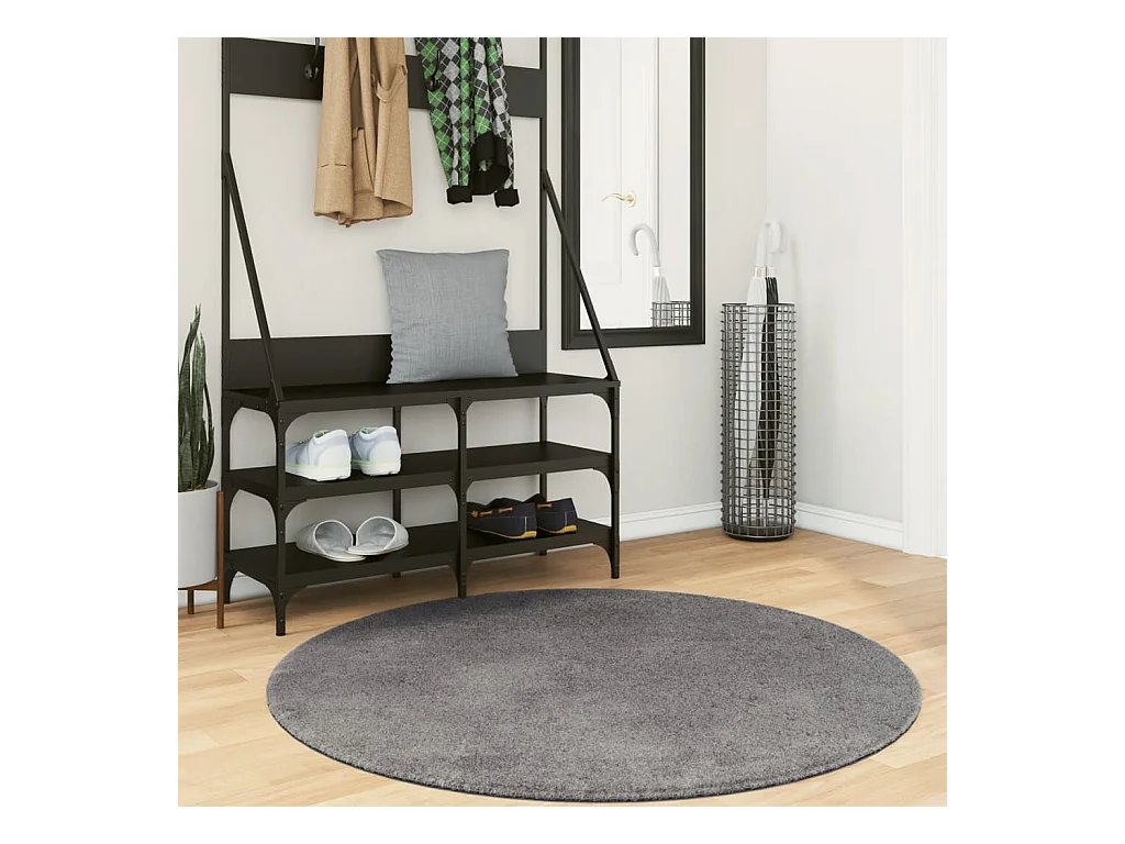 IZA kortpolig Scandinavisch vloerkleed in antraciet Ø 120 cm