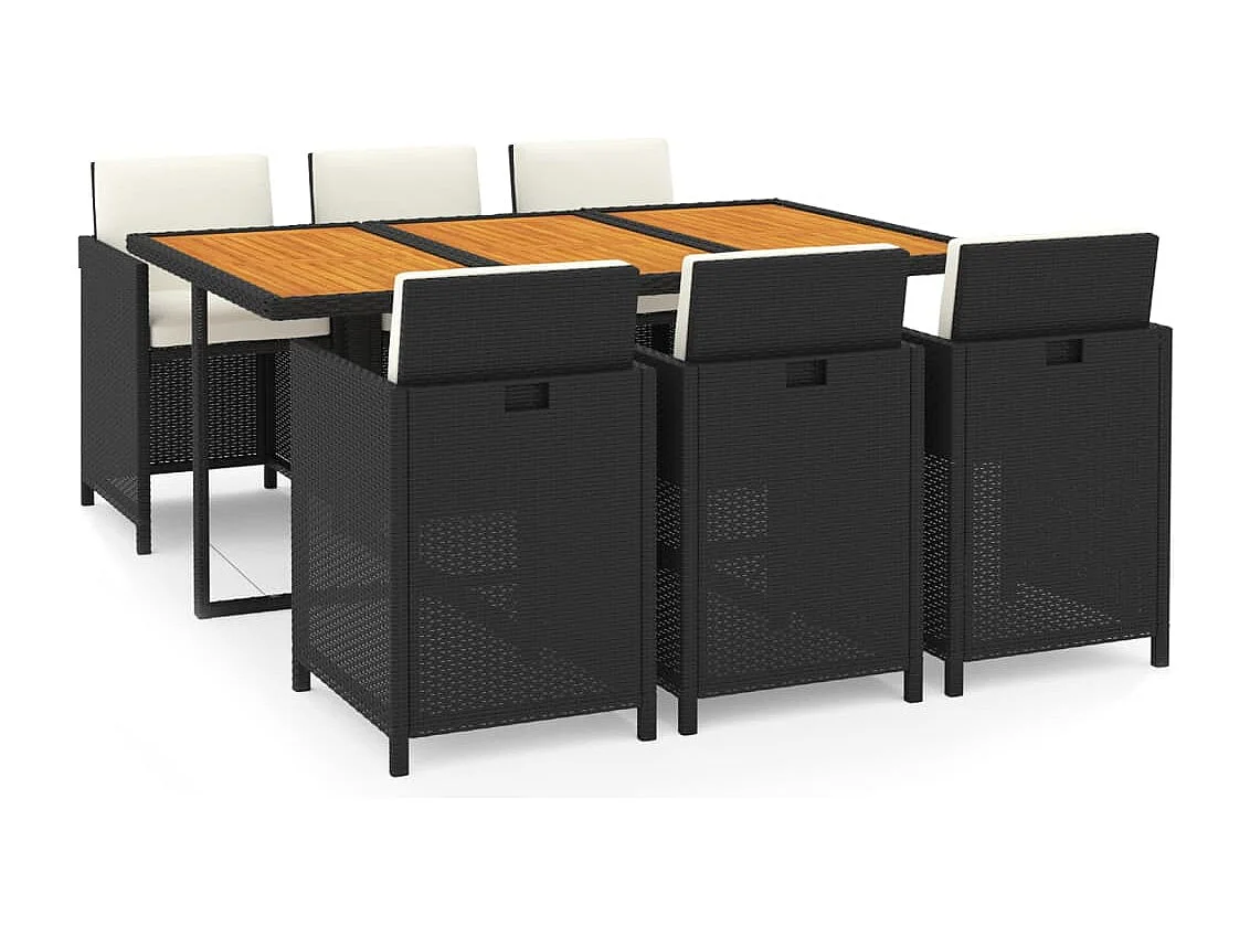 Hugo 7-delige Tuinset met kussens poly rattan zwart