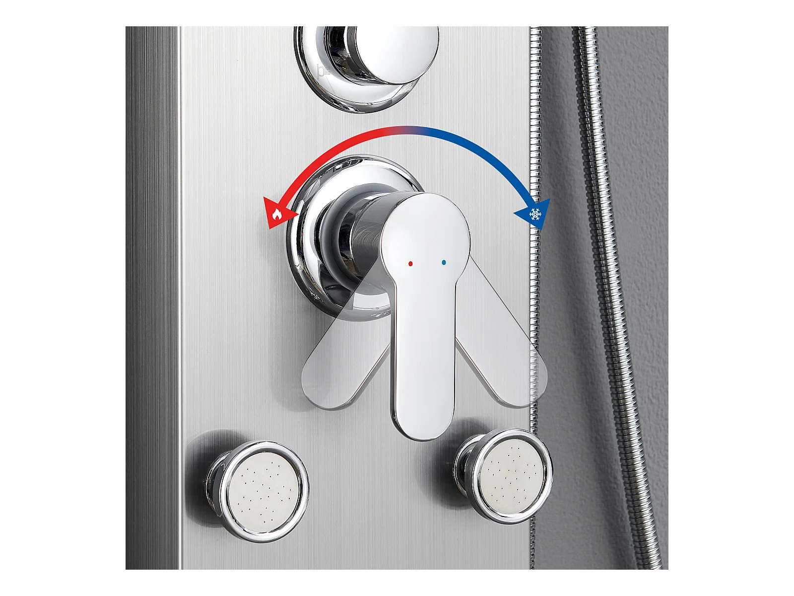 AuraLum Max Douchekolom HyDromassante met LCD-scherm Temperatuurweergave Multifunctioneel douchepaneel Roestvrij staal met 4 massagestralen, EU-model