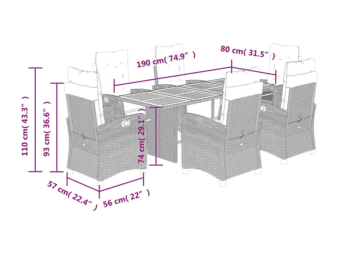 Igmar 7-delige Tuinset met kussens poly rattan beige