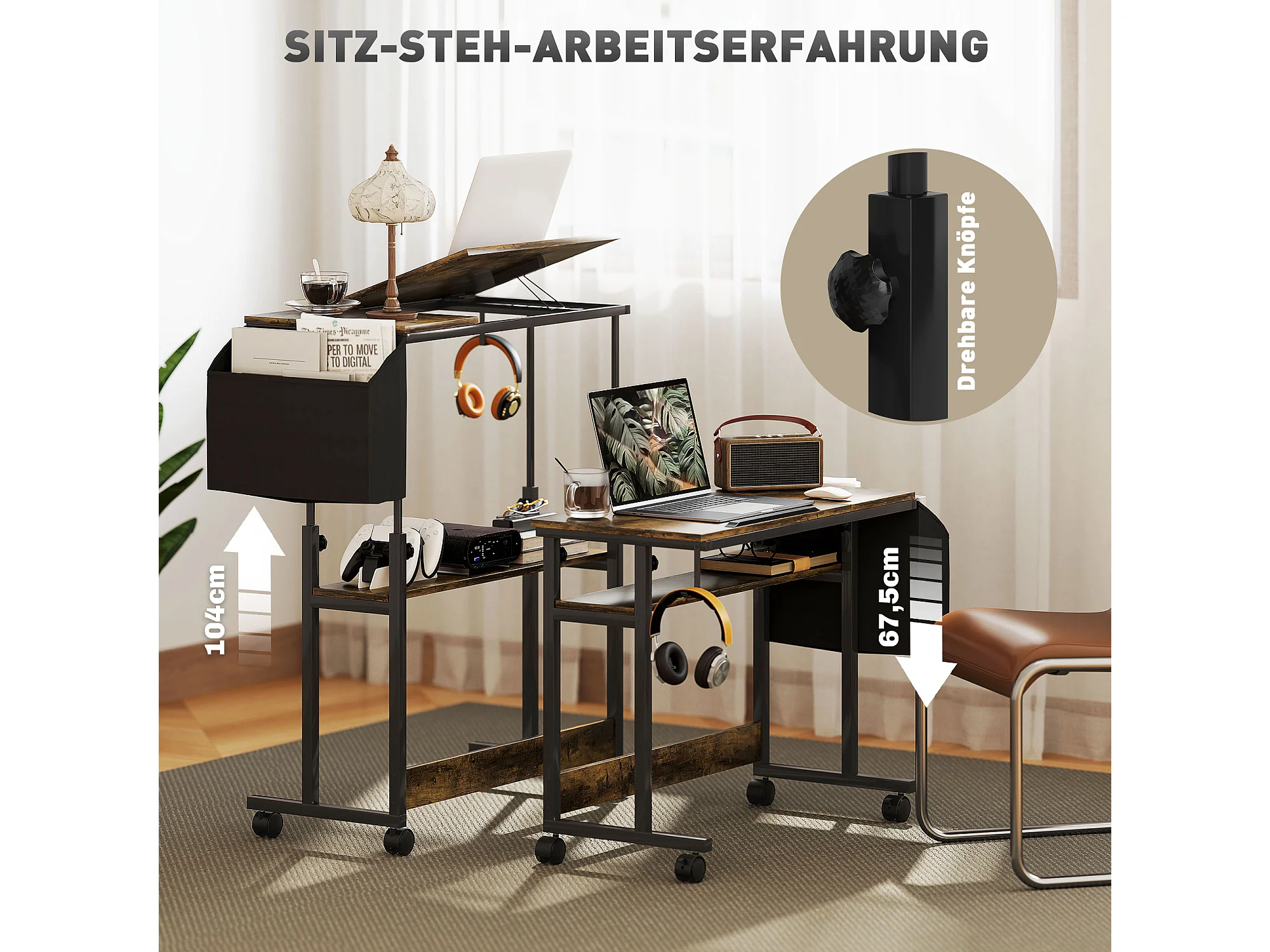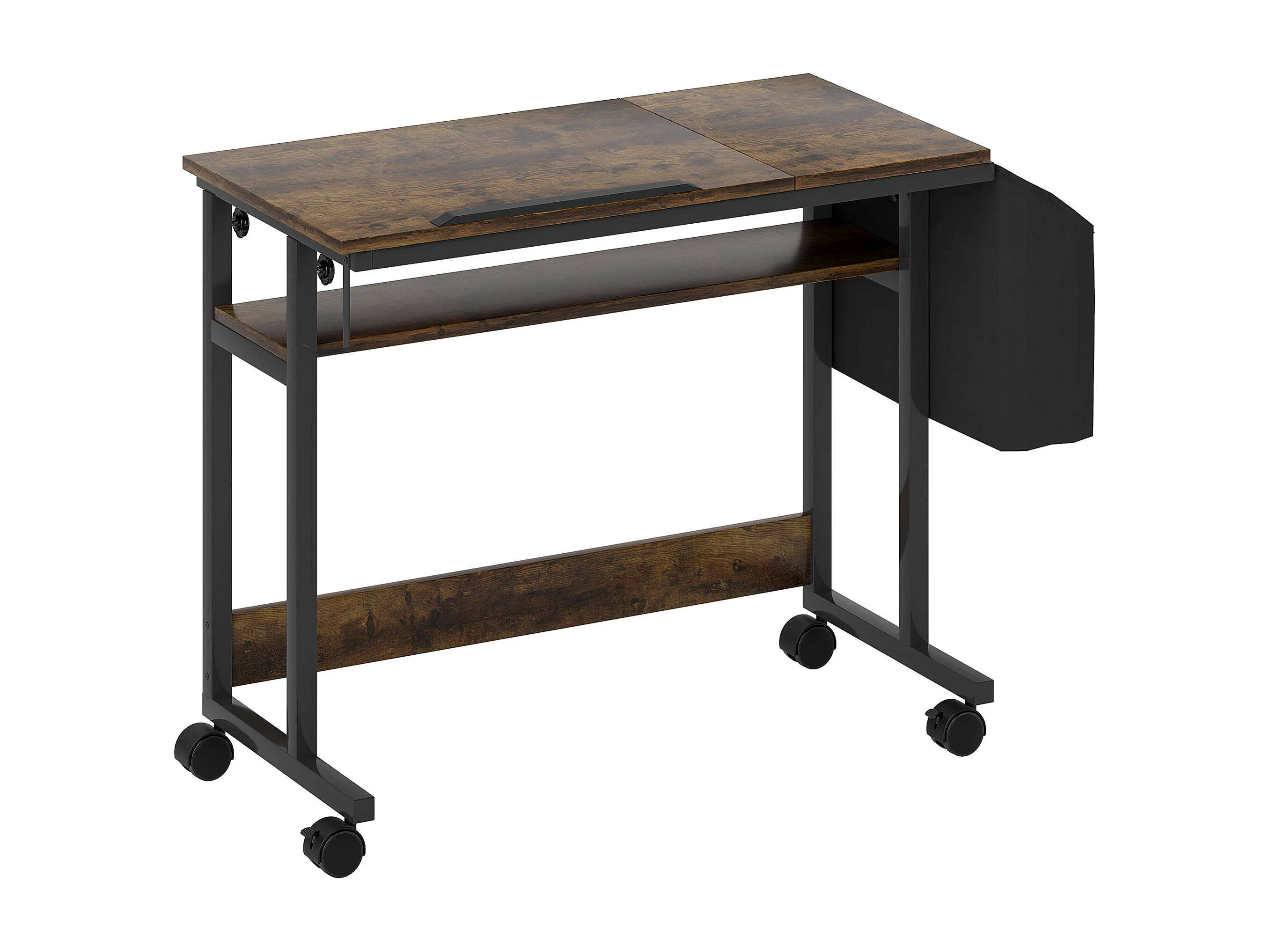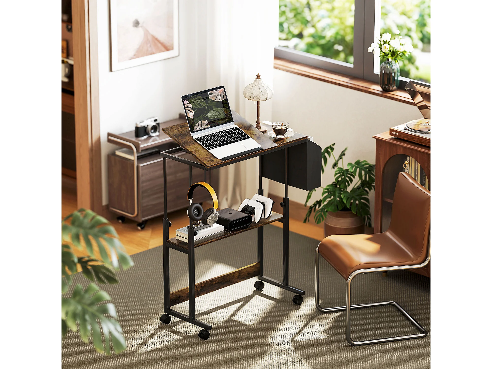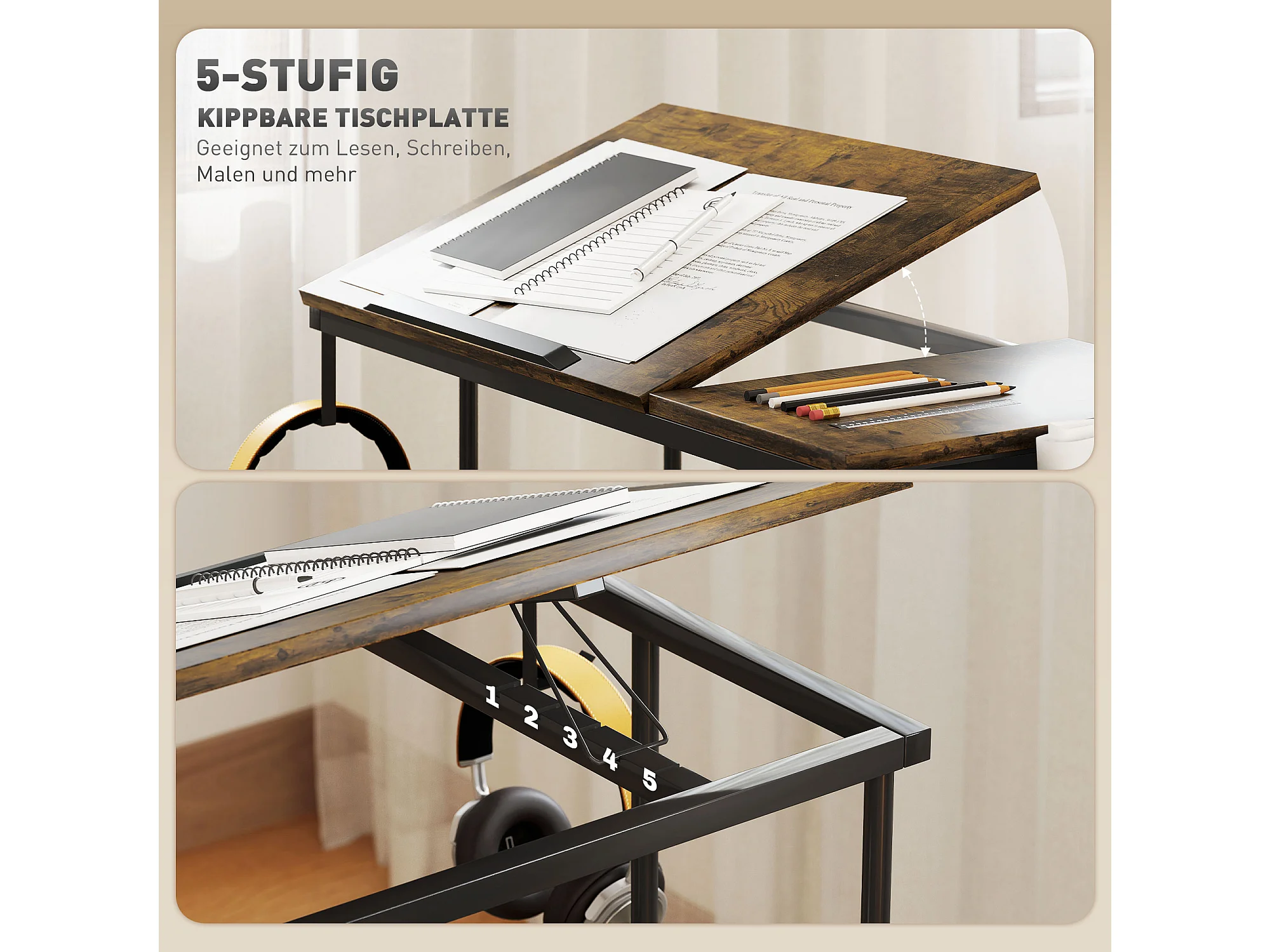 In hoogte verstelbaar bureau met wielen en opbergruimte, kantelbaar oppervlak, metaal en hout, rustiek bruin (92x40x67,5-104 cm)