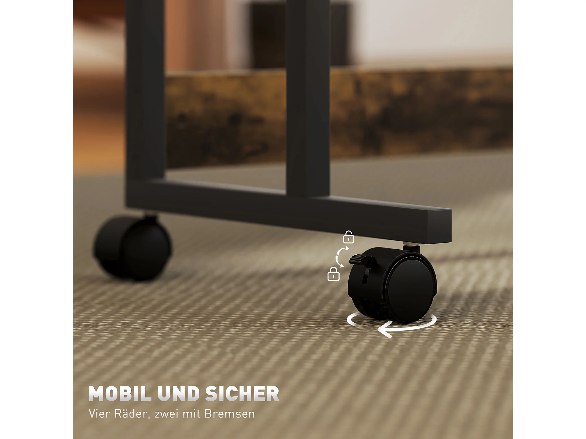In hoogte verstelbare werktafel, met 4 wielen, 2 remmen, spaanplaat, rustiekbruin (65x48x108 cm)