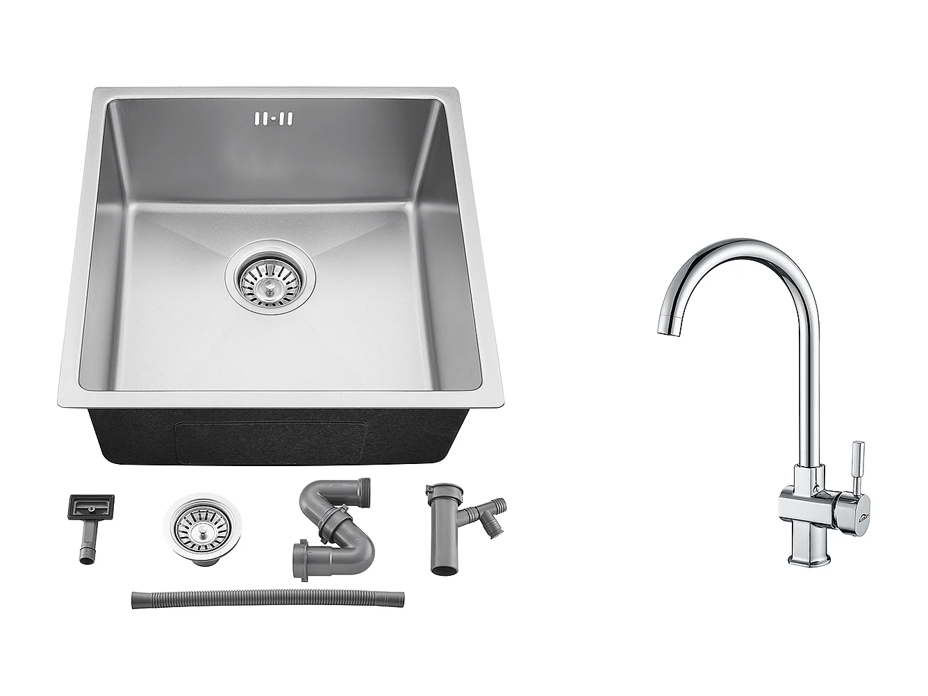 Inbouwspoelbak 44x44x20CM- 304 roestvrijstalen gootsteen 1 bak, zilver + 360° draaibare verchroomde keukenkraan Koud/Warm water