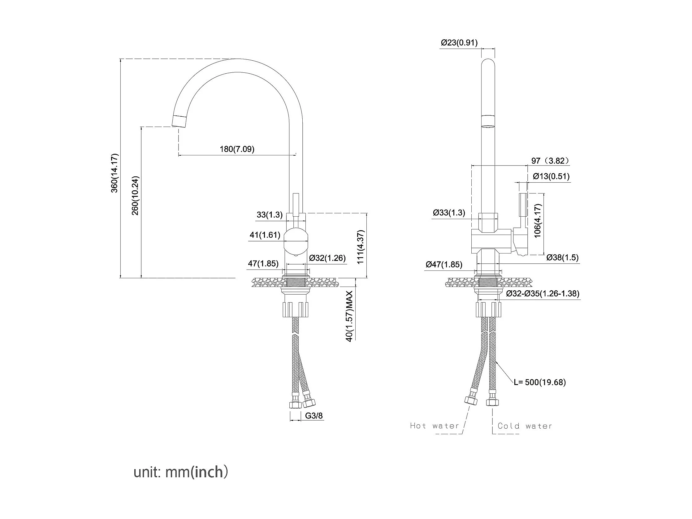 Cecipa max 3-weg keukenkraan, 3 in 1 keukenmengkraan voor osmosesysteem, schoonwaterkraan met 2 aparte bedieningshendels, EU-model