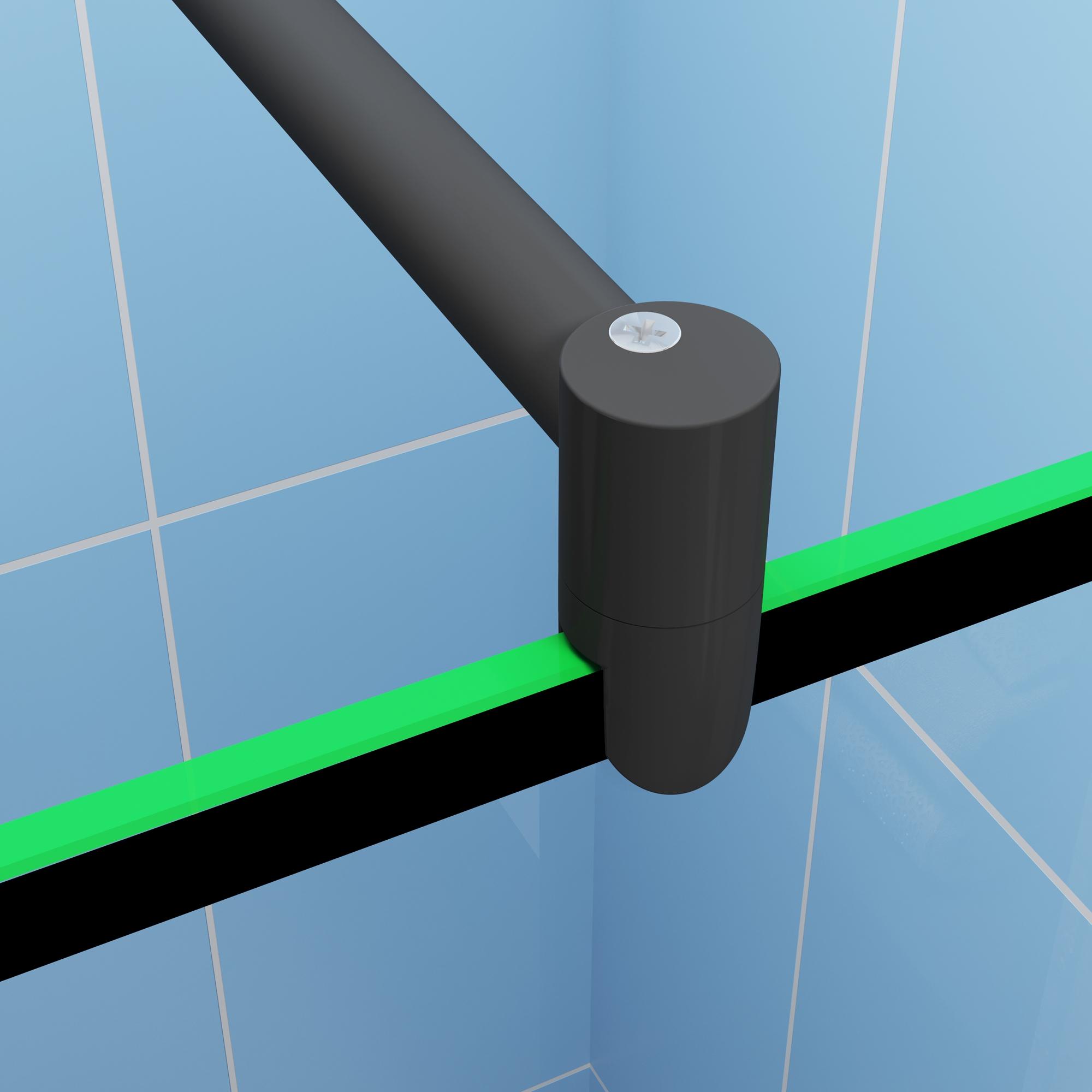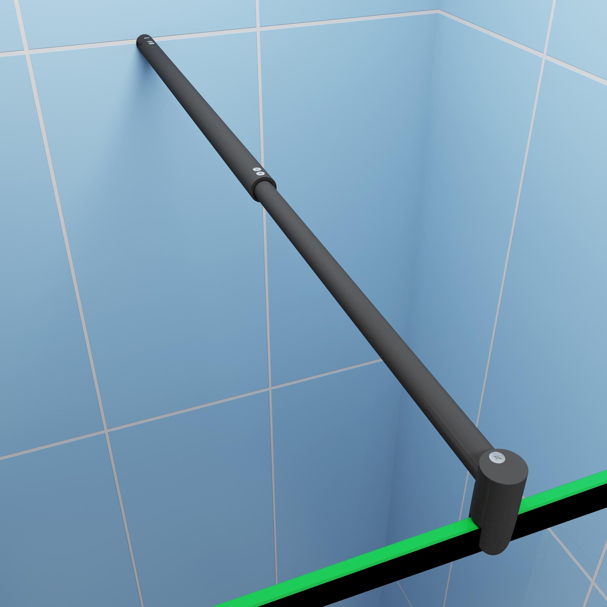 Industriële inloopdouchewand 80x200cm-onregelmatig blokpatroon-8mm easy clean glas-planchet-N-stabilisatiestang 90cm-Snijbaar-mat zwart