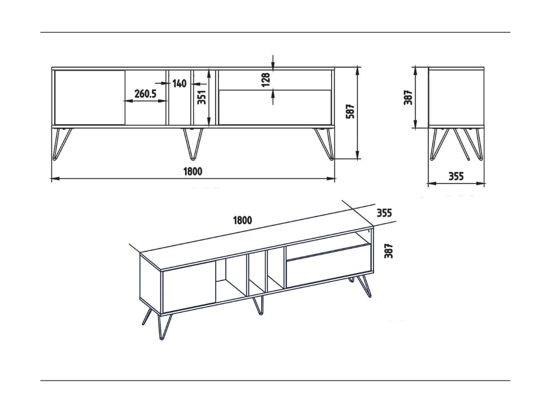 Industriële TV-meubel van Hout en Goud met Opbergruimte 180 cm