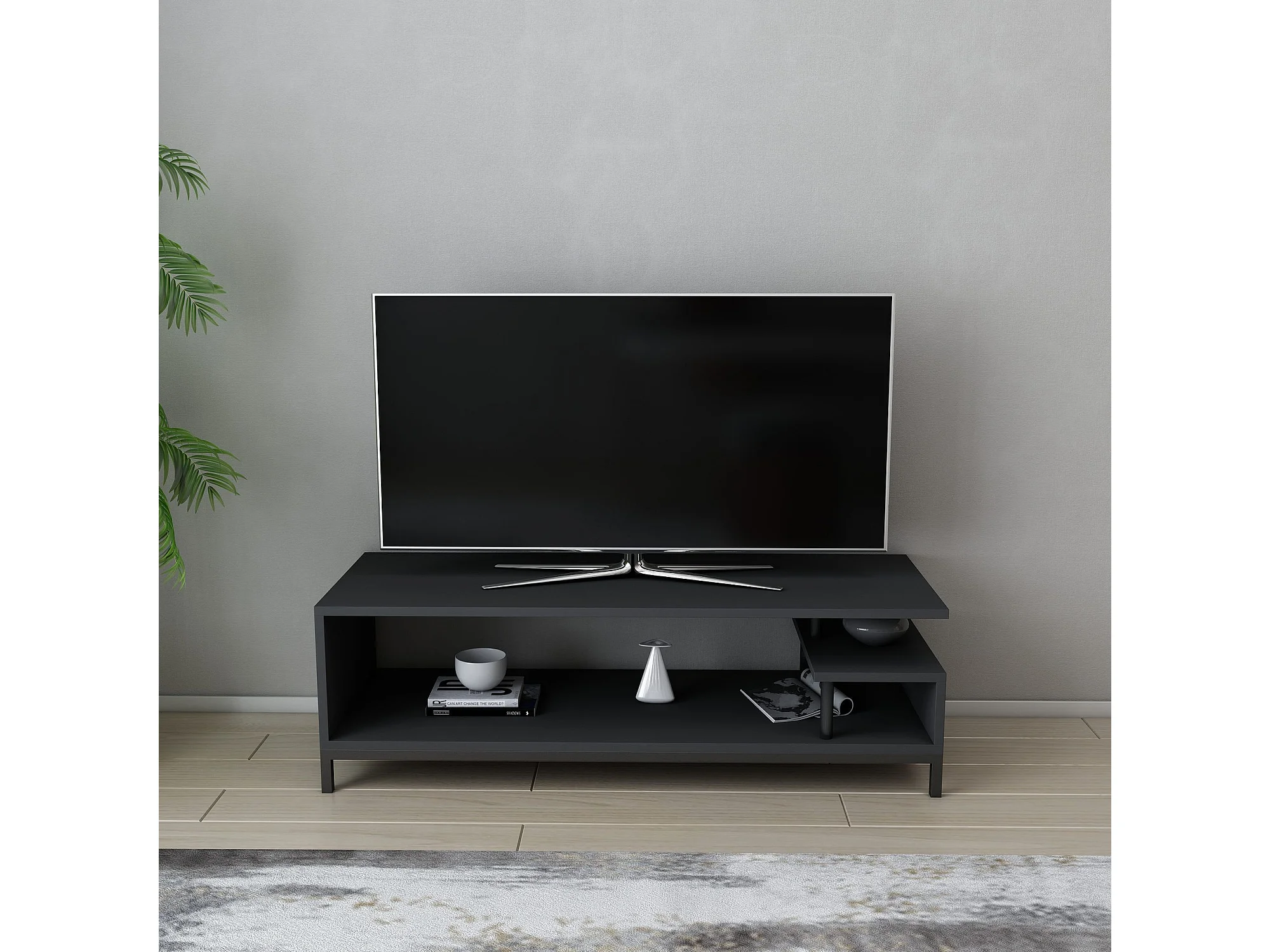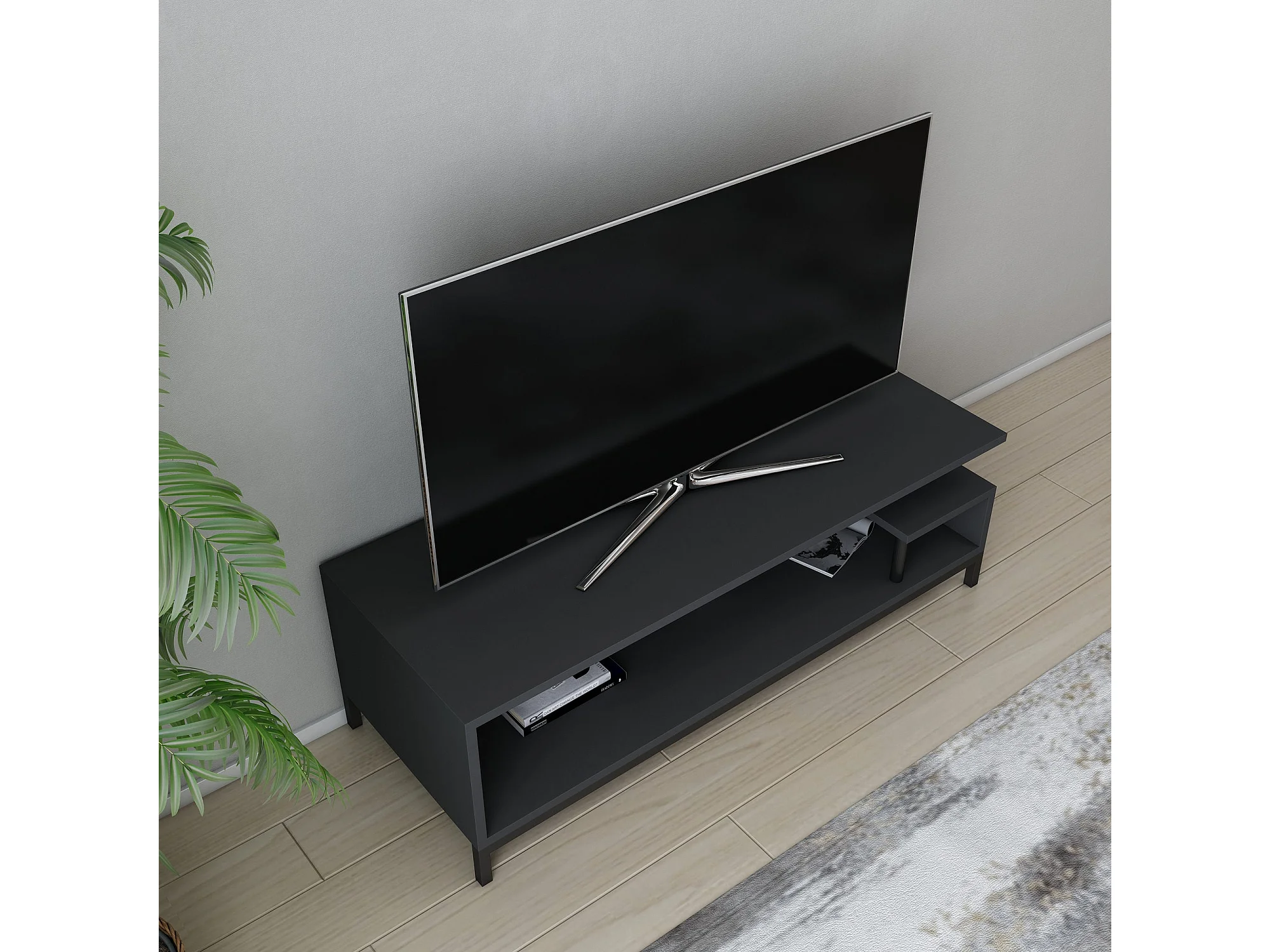 Industriële tv-standaard, zwart en antraciet, 120 x 44,6 x 37,6 cm | 100% melamine gecoate spaanplaat, 18 mm dik | Stijlvol en duurzaam voor moderne woonkamers