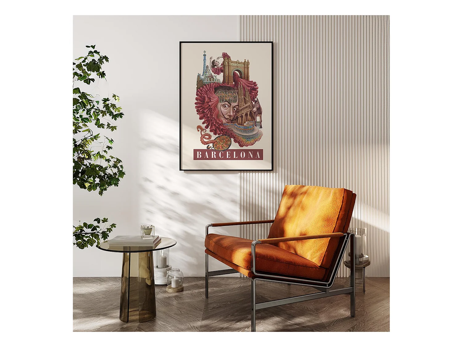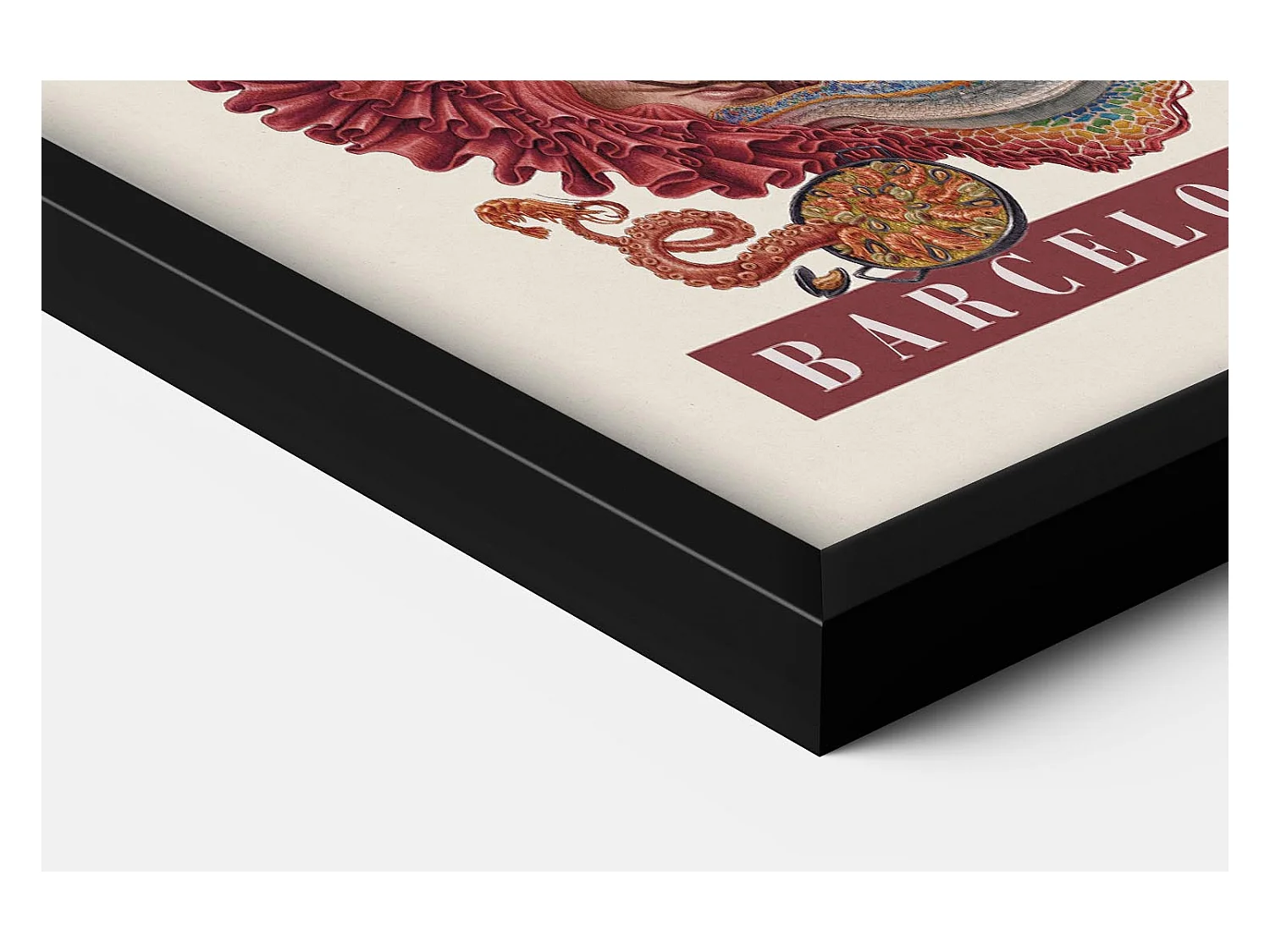 Ingelijste afbeelding, Spaanse stadsprint, Barcelona zwarte lijstkunst, Barcelona urban decor, 70x100 cm.