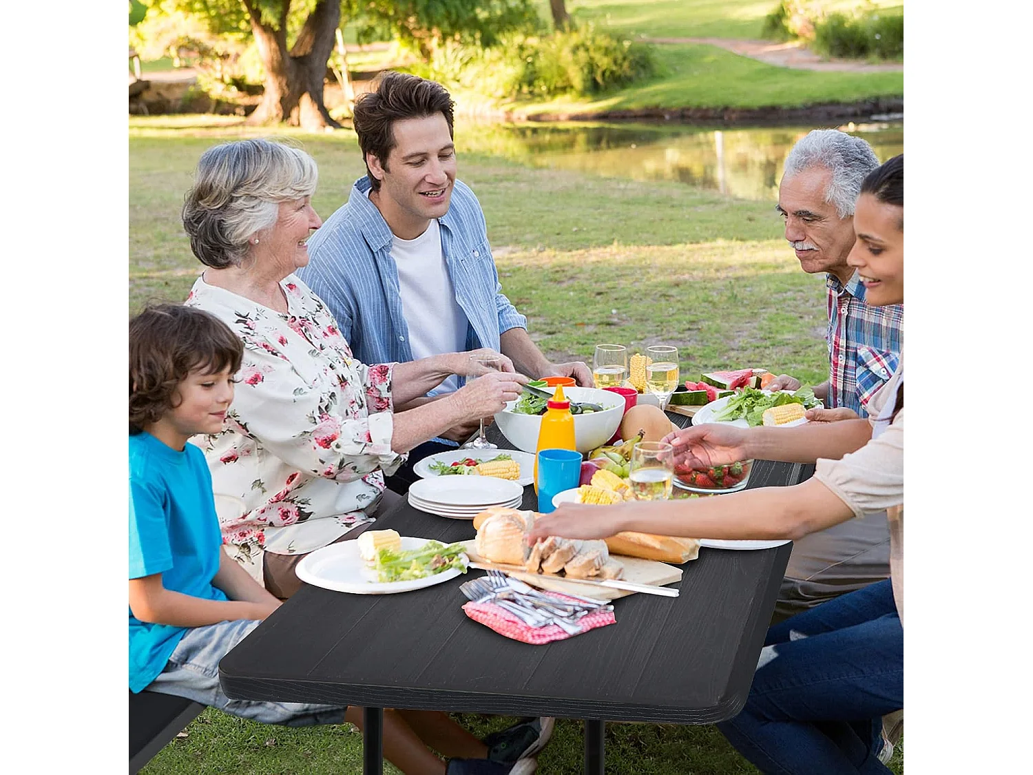 Inklapbare picknicktafel met banken, 136 cm, campingtafelset voor buiten, biertentgarnituur, biertafelgarnituur voor terras, tuin (zwart)AB92894