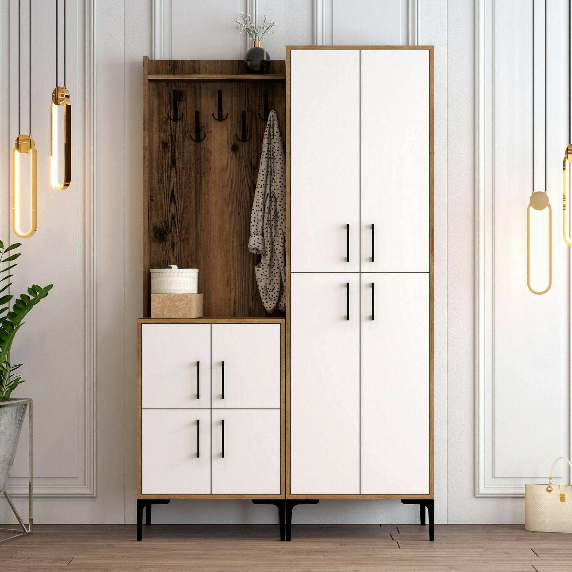 Inkommeubel Dgottard, EntratinaHanger, samenstelling voor atrium, mp-functioneleerhouder, 120x35h200 cm, walnoot en wit