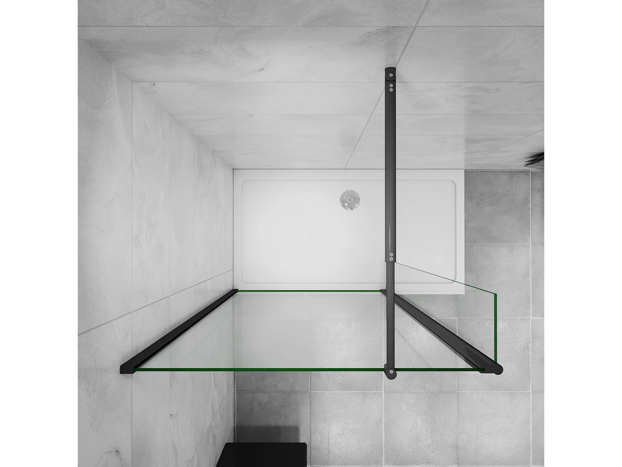 Inloopdouche-douchewand-walk in 10mm NANO EasyClean veiligheidsglas,150x200cm+70-120cm Stabilisatiestang,mat zwart aluminium profiel.