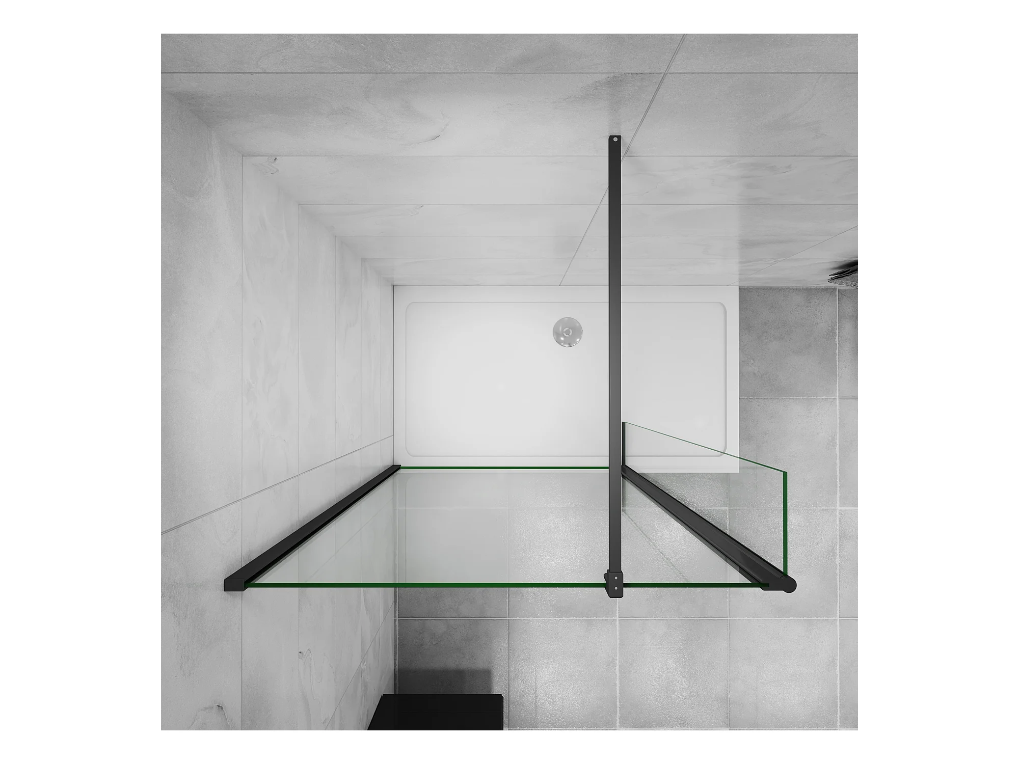 Inloopdouche met zwarte beschermfolie,140x200cm hoog,8mm EasyClean veiligheidsglas,Stabilisatiestang Norm:140cm,mat zwart aluminium profiel.