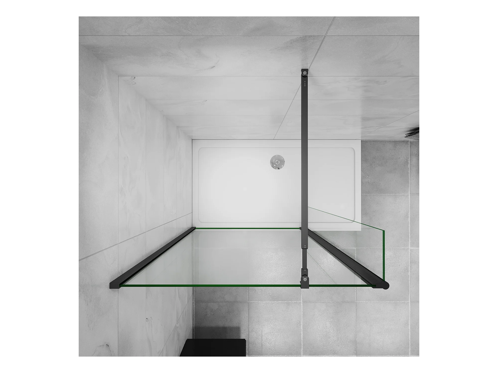 Inloopdouche 120x200cm met zwart folie,10mm NANO EasyClean veiligheidsglas,73-120cm Stabilisatiestang,mat zwart aluminium profiel.