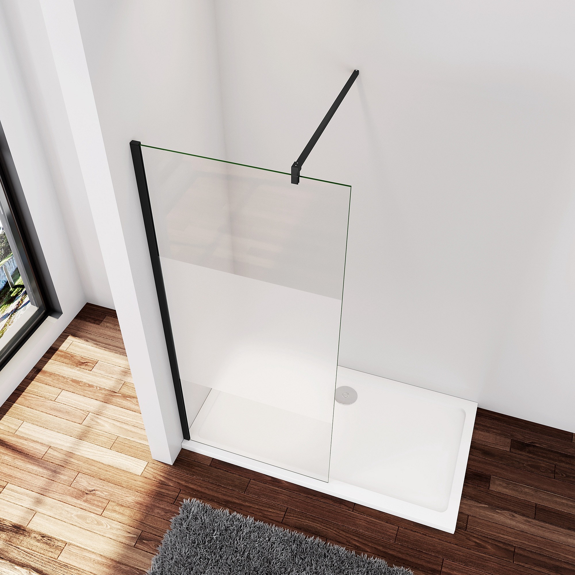 Inloopdouche-douchewand-walk in 100x200 cm,8mm midden wit gematteerd gehard glas met explosieveilige folie+73-120cm Stabilisatiestang,mat zwart aluminium profiel.