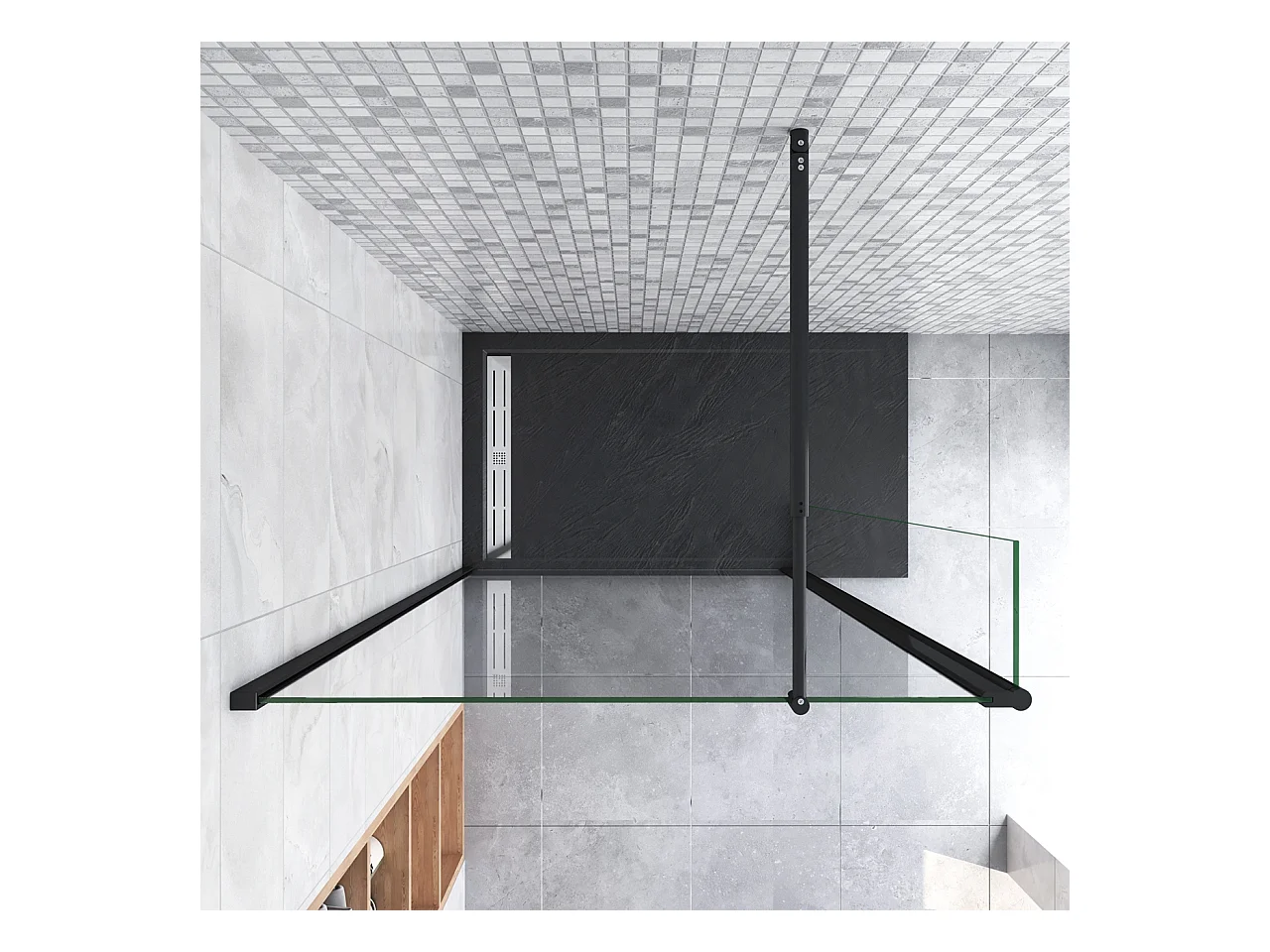 Inloopdouche-douchewand-walk in 8mm NANO EasyClean veiligheidsglas,100x200cm+40x200cm draaibaar hoekprofiel+70-120cm Stabilisatiestang,mat zwart aluminium profiel.