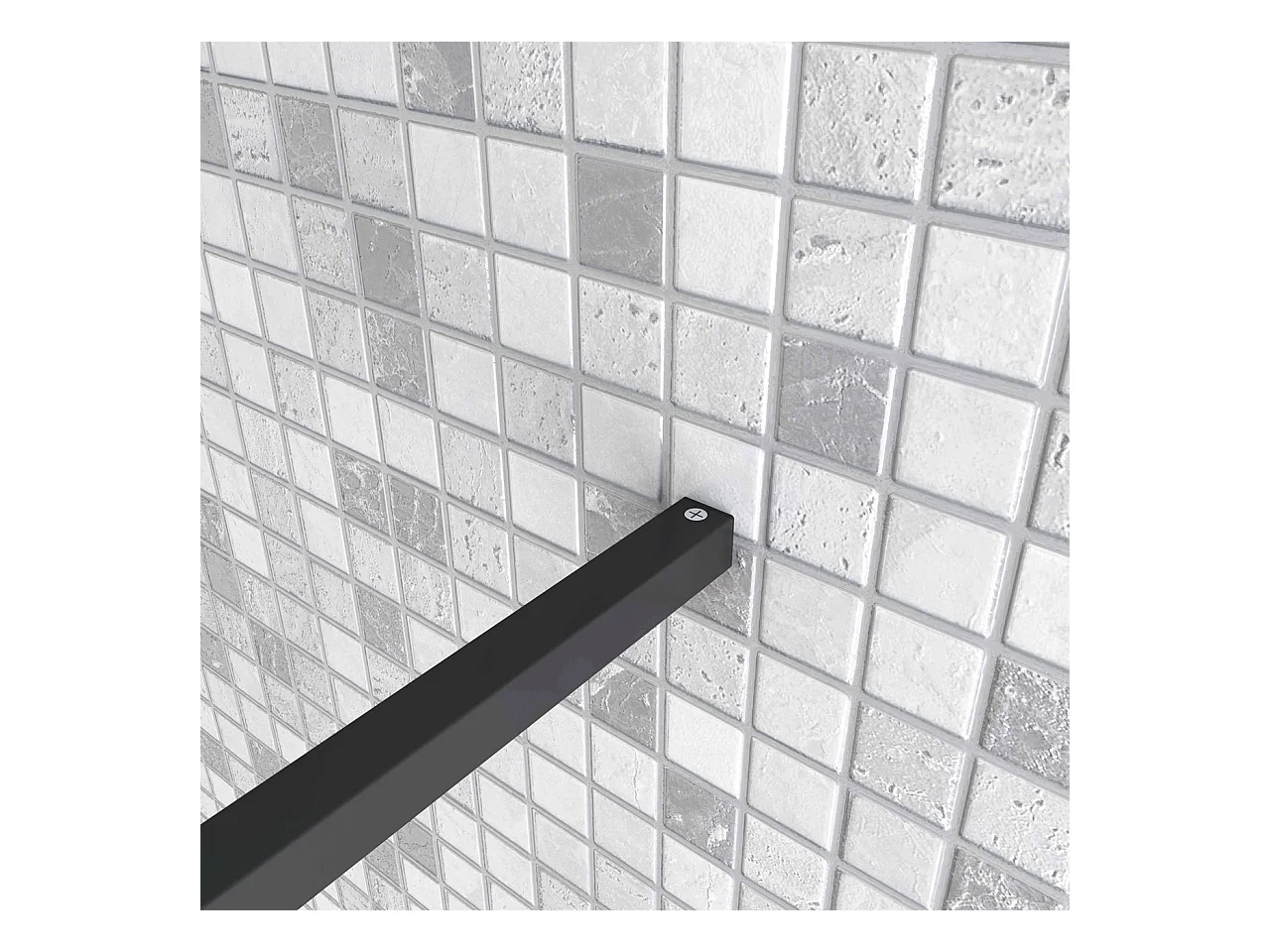 Inloopdouche-douchewand-walk in 8mm NANO EasyClean veiligheidsglas,120x200cm+30x200cm draaibaar hoekprofiel+73-120cm Stabilisatiestang,mat zwart aluminium profiel.