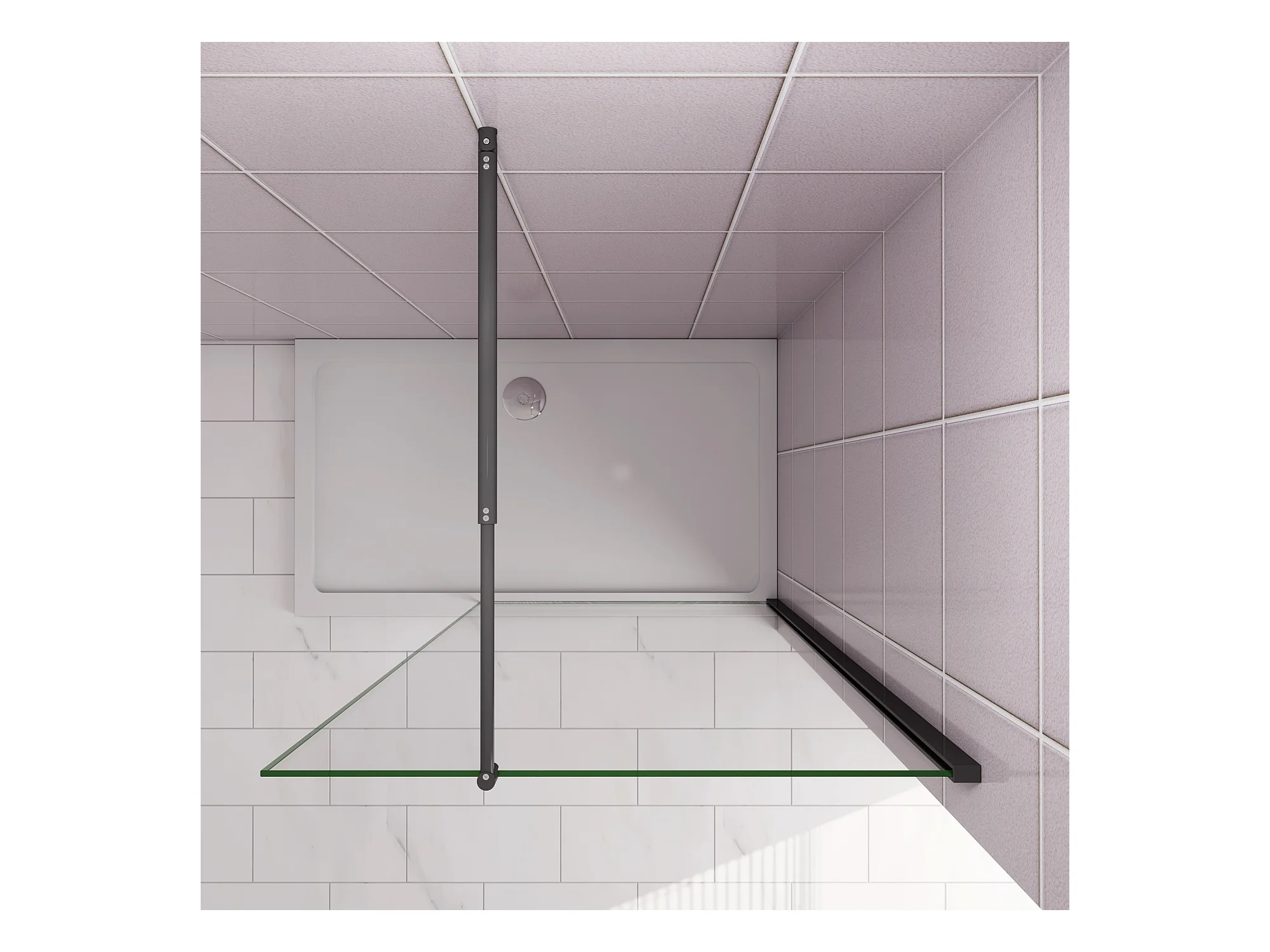 Inloopdouche-douchewand-walk in 8mm NANO EasyClean veiligheidsglas,50x200cm+70-120cm Stabilisatiestang,mat zwart aluminium profiel.