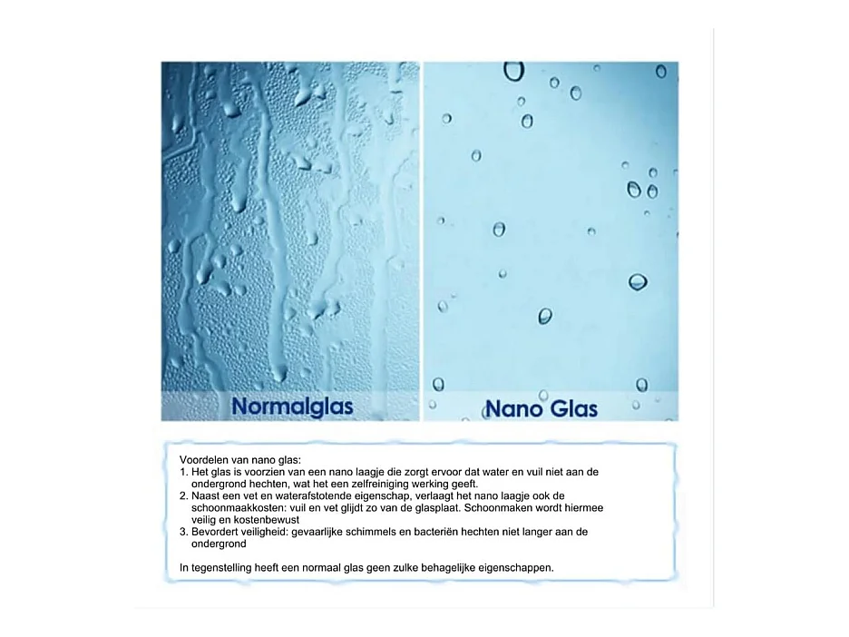 Inloopdouche-douchewand-walk in 10mm NANO EasyClean veiligheidsglas,50x200cm+73-120cm Stabilisatiestang,mat zwart aluminium profiel.