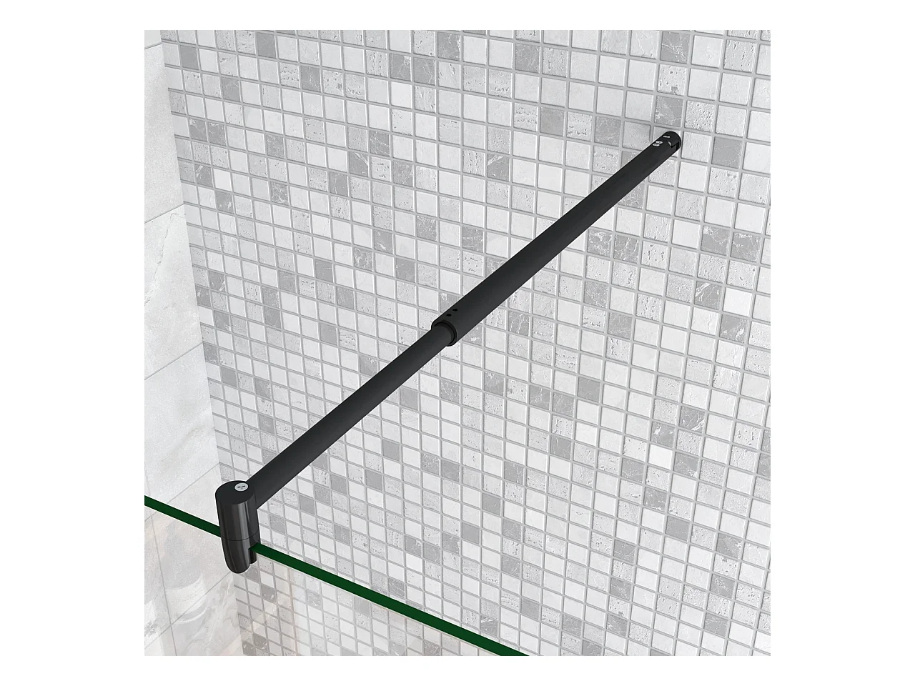 Inloopdouche-douchewand-walk in 8mm NANO EasyClean veiligheidsglas,70x200cm+30x200cm draaibaar hoekprofiel+F-vorm: 140 Stabilisatiestang,mat zwart aluminium profiel
