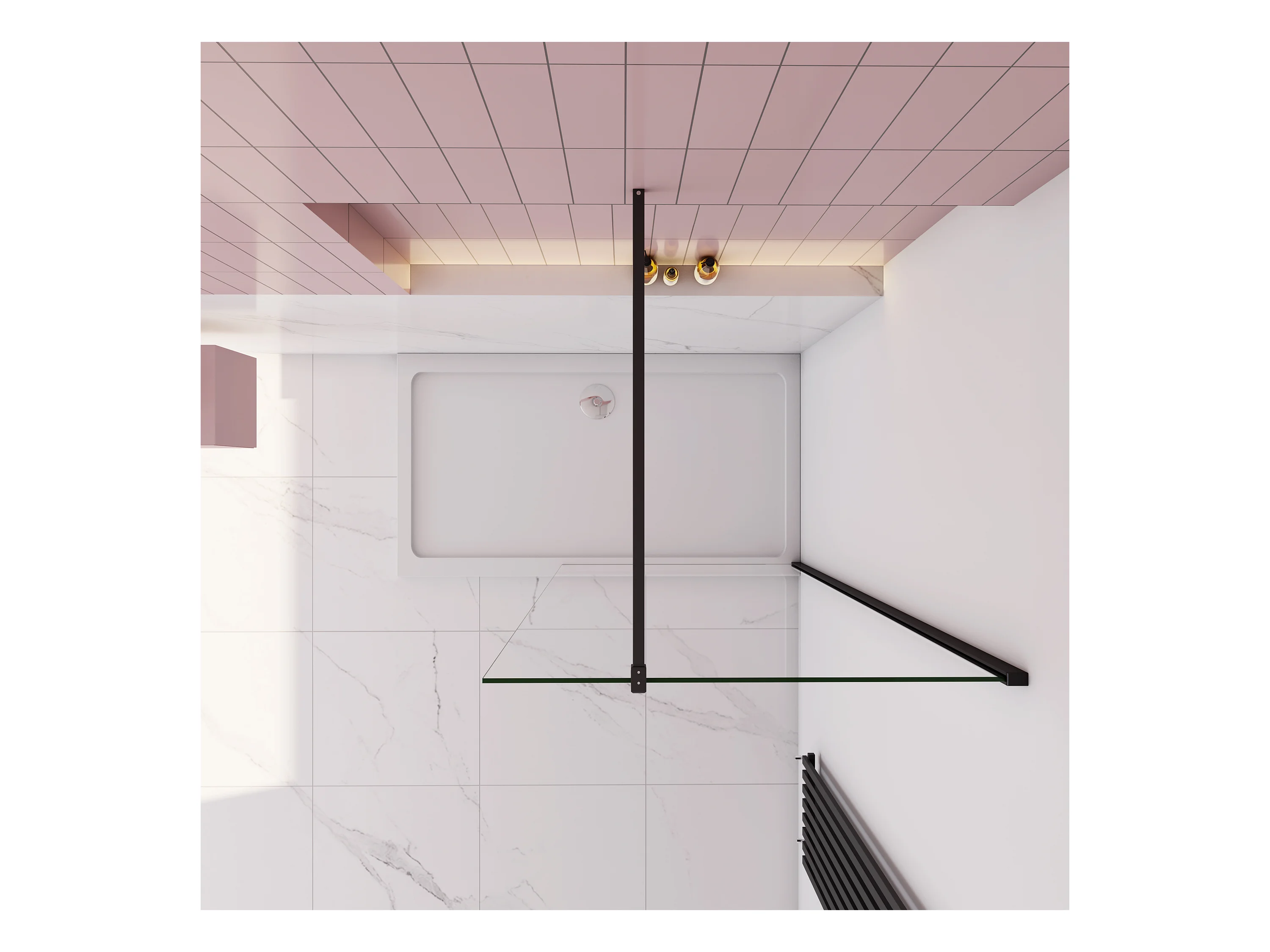 Inloopdouche met zwarte beschermfolie,90x200cm hoog,8mm EasyClean veiligheidsglas,Stabilisatiestang 73-120cm,mat zwart aluminium profiel.