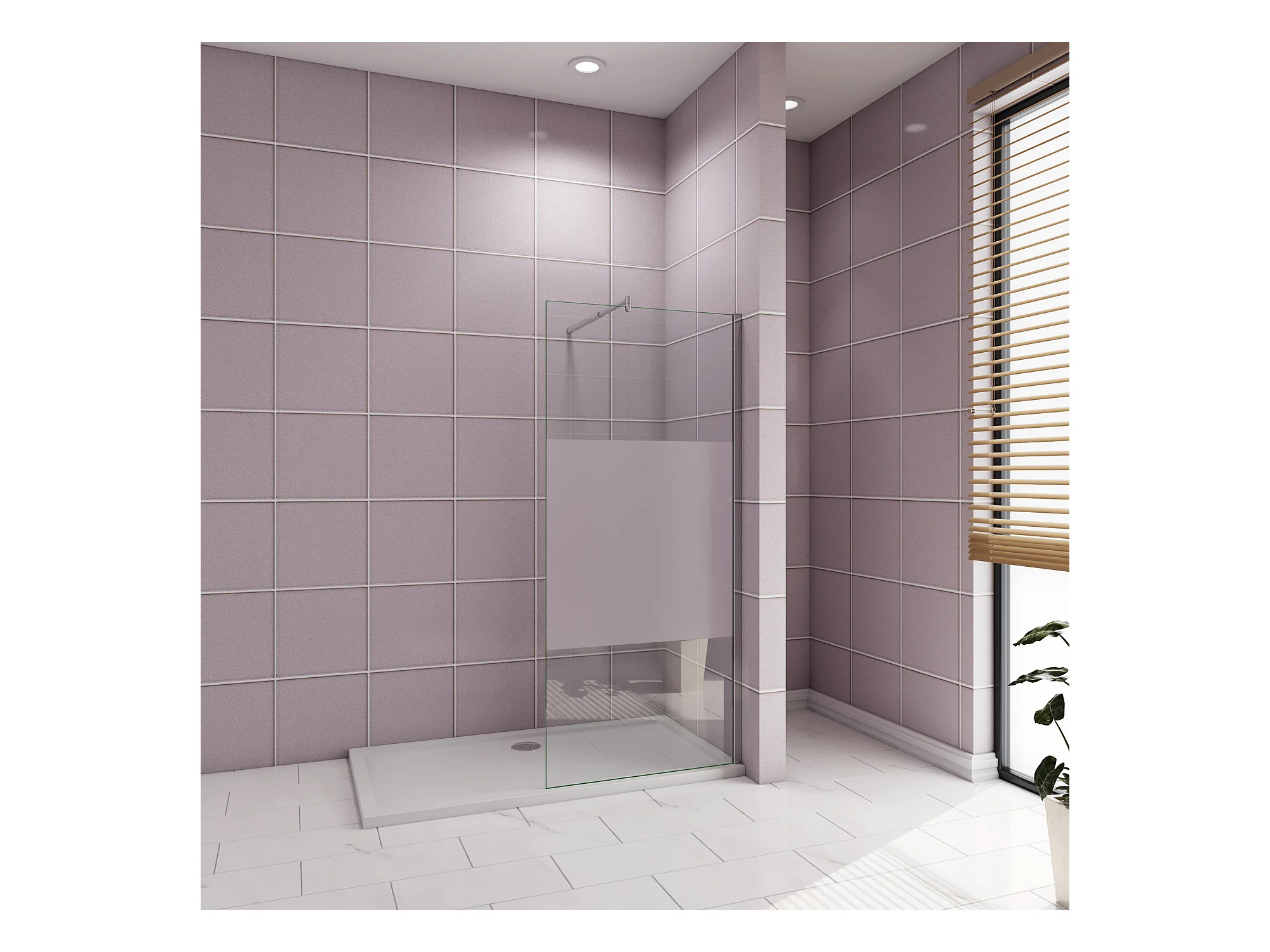 120x200cm Douchewand inloopdouche,10mm dik mat gehard glas met explosieveilige folie,stabilisatiestang 70-120cm (verstelbaar),glanzend chroom profiel