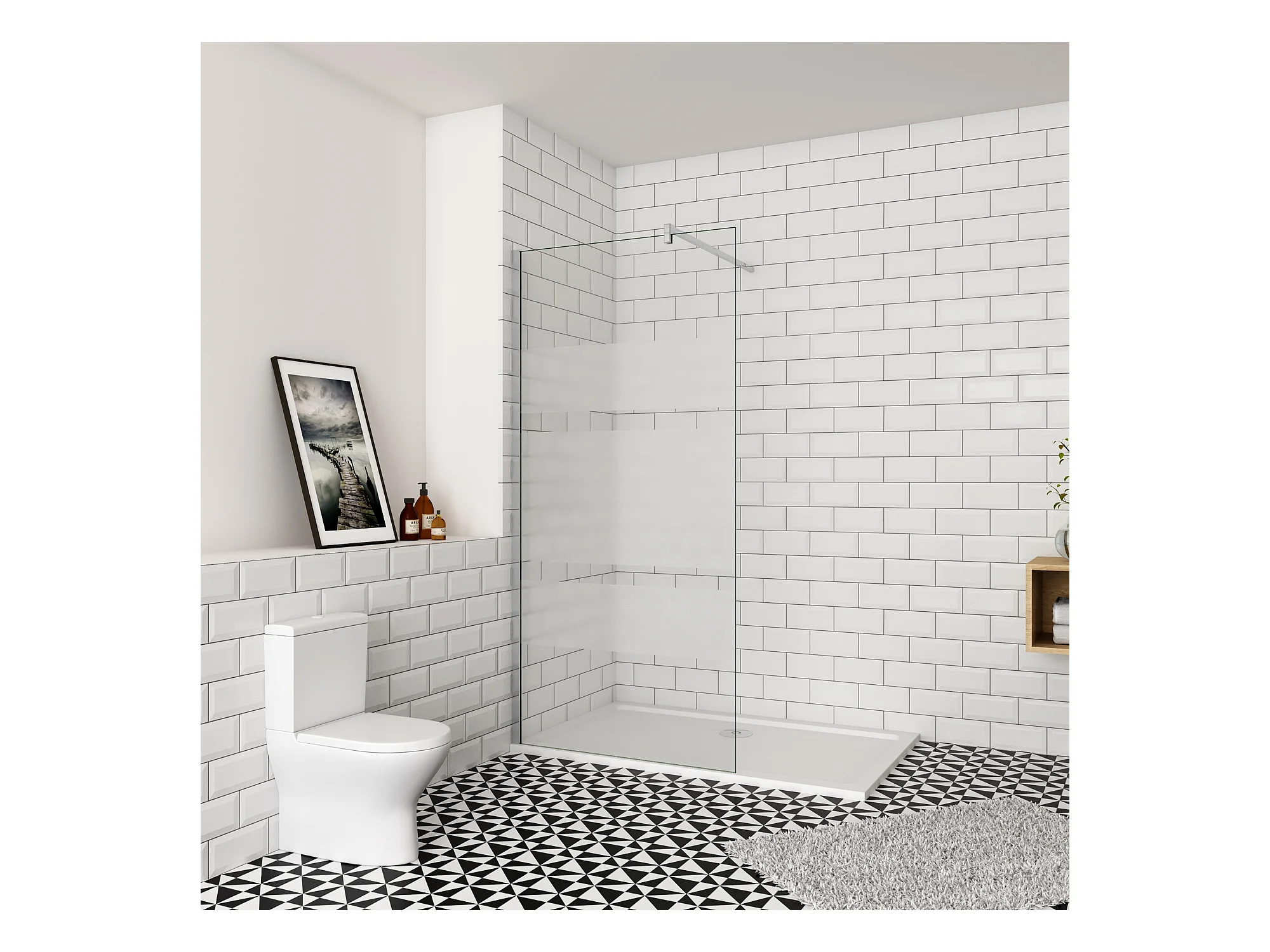 Inloopdouche-douchewand-walk in 6mm NANO EasyClean veiligheidsglas,140x190cm+F-Form:90cm Stabilisatiestang,glanzend chroom profiel