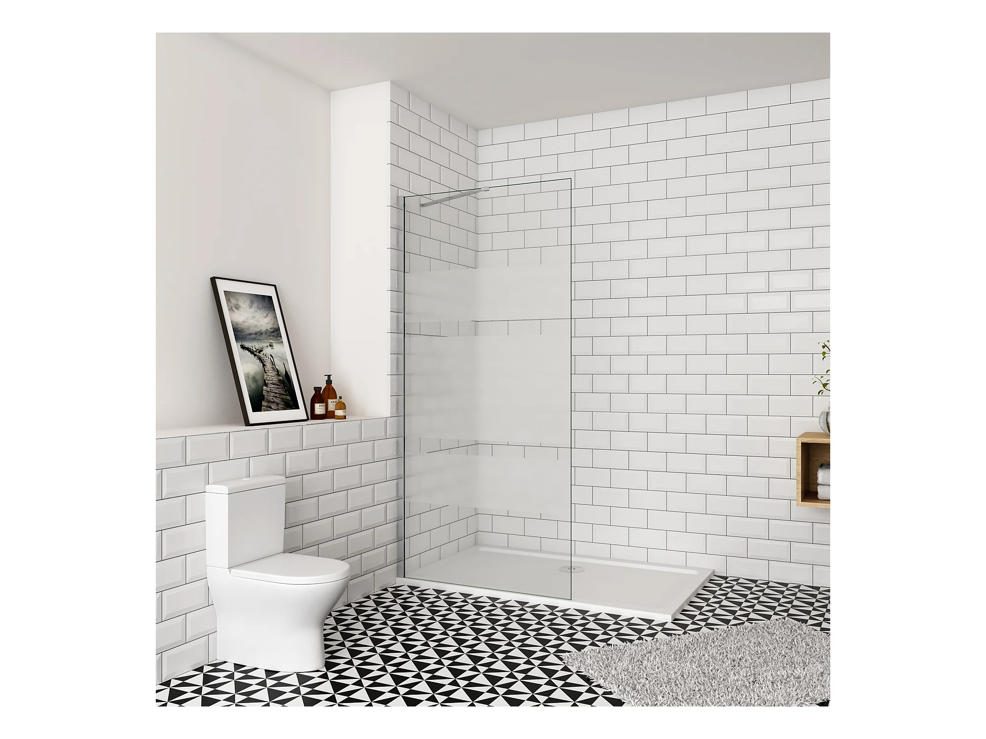 70x200cm Douchewand inloopdouche,10mm dik mat gehard glas met explosieveilige folie,stabilisatiestang 140cm (snijdbaar),glanzend chroom profiel