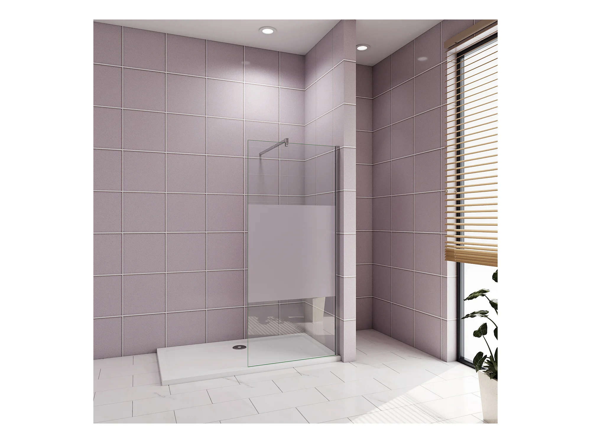 Inloopdouche-douchewand-walk in 80x200 cm,8mm midden wit gematteerd gehard glas met explosieveilige folie+N-vorm: 90 Stabilisatiestang,glanzend chroom profiel