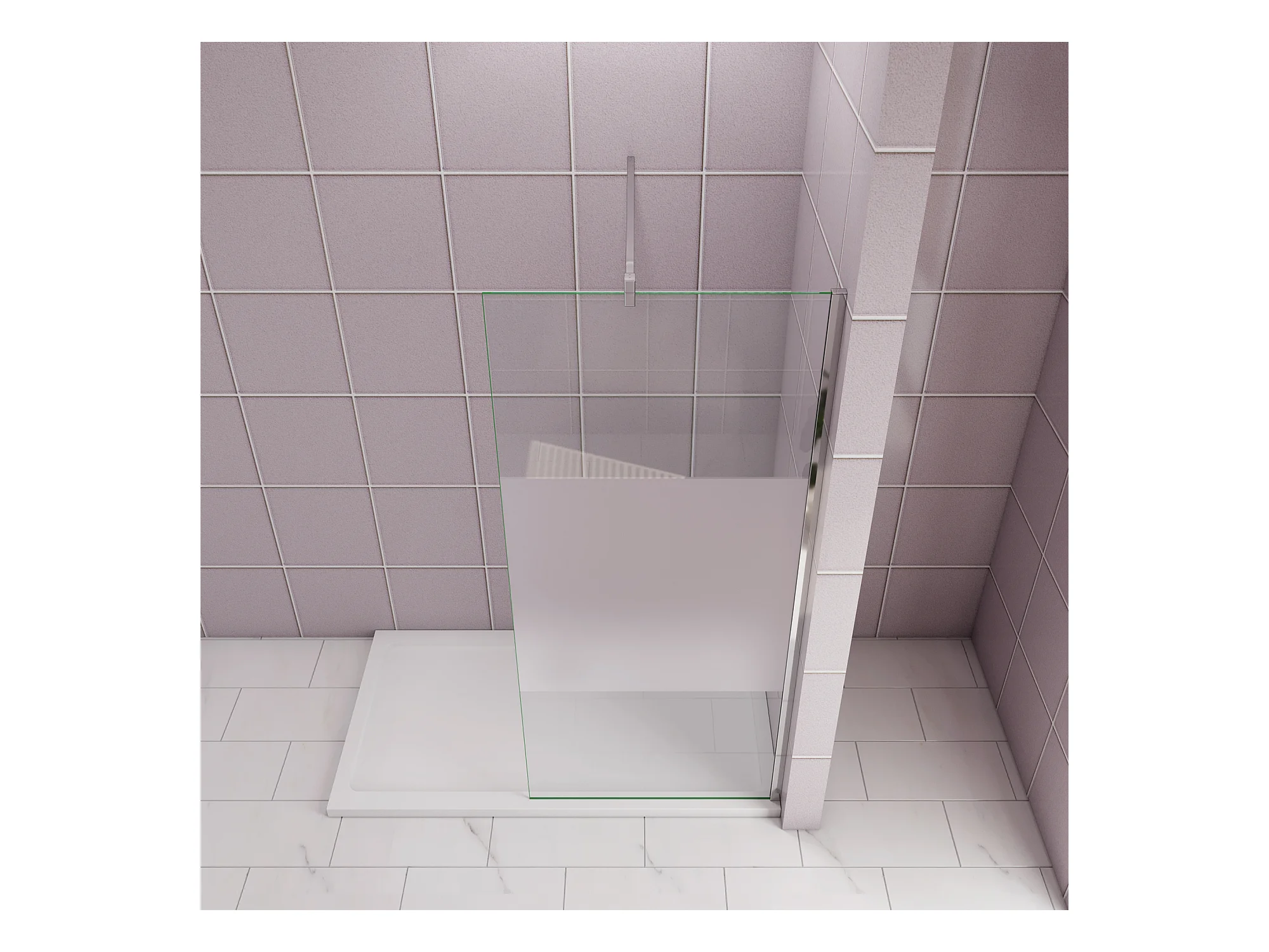 80x200cm Douchewand inloopdouche,10mm dik mat gehard glas met explosieveilige folie,stabilisatiestang 70-120cm (verstelbaar),glanzend chroom profiel