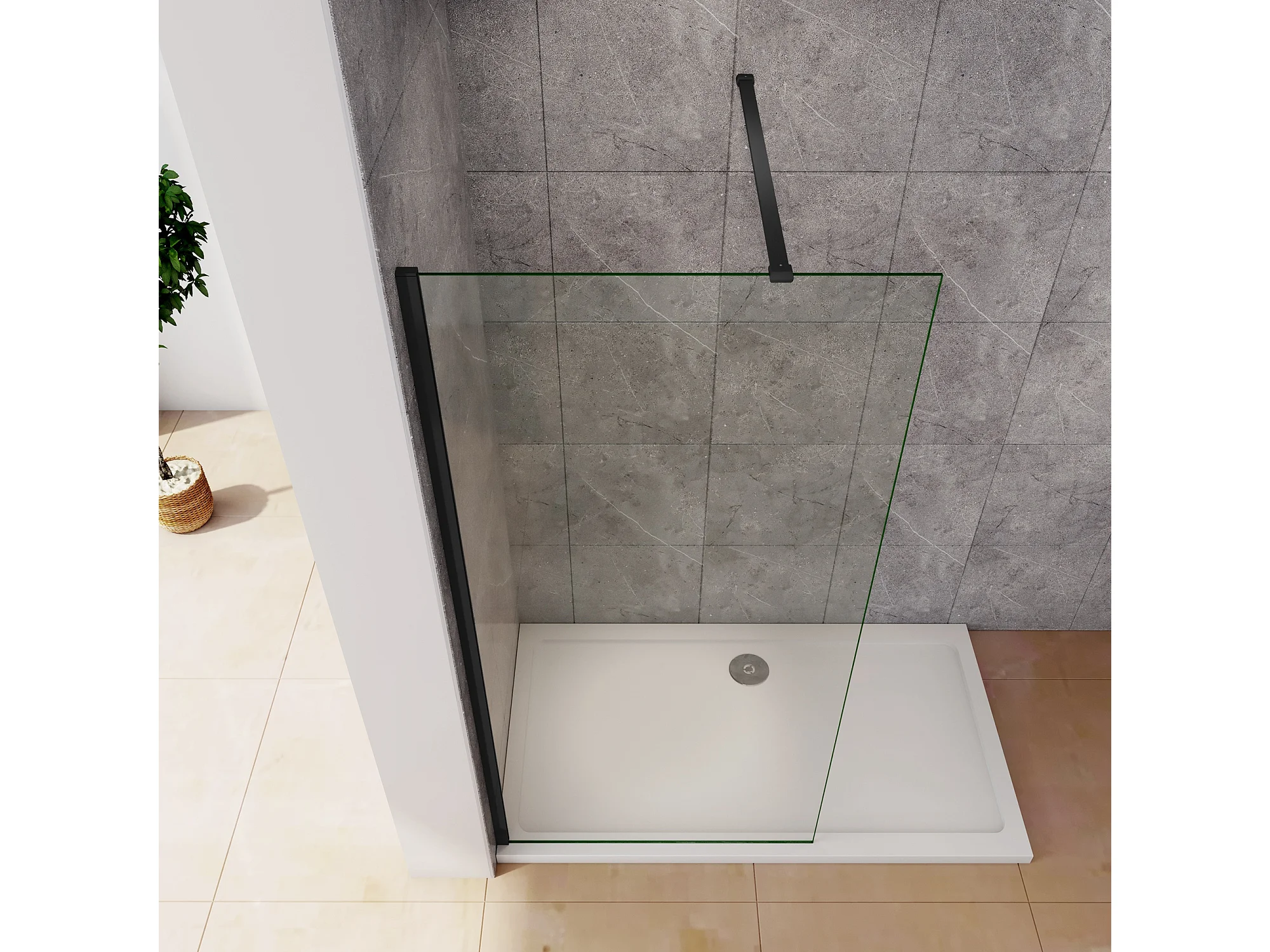 Inloopdouche met zwarte beschermfolie,120x200cm hoog,8mm EasyClean veiligheidsglas,Stabilisatiestang 73-120cm,mat zwart aluminium profiel.