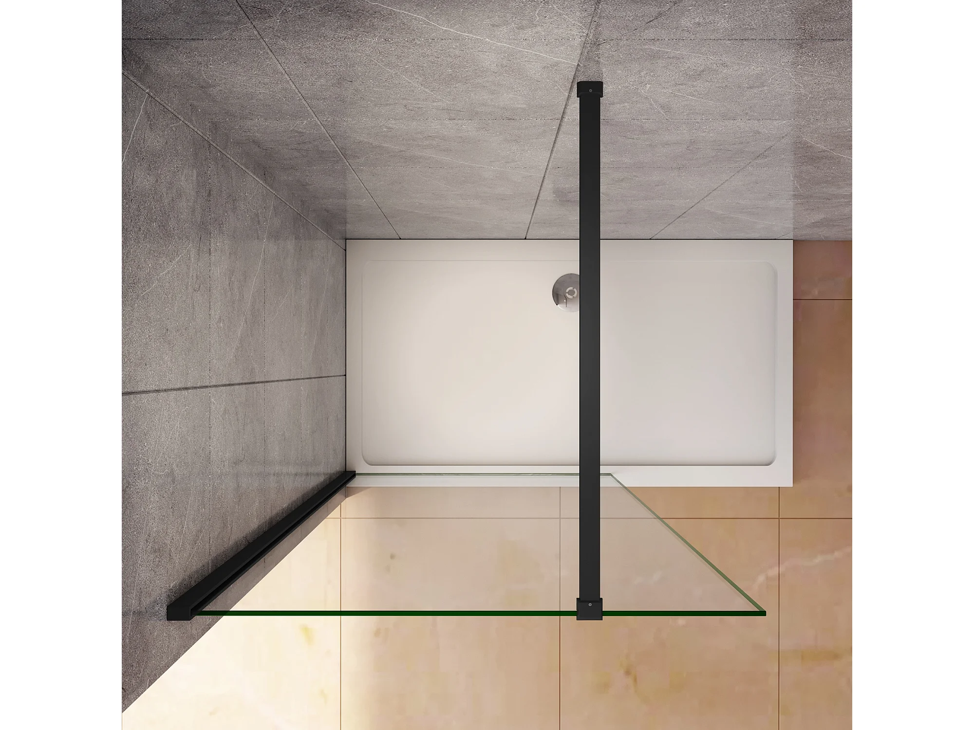 Inloopdouche-douchewand-walk in 8mm NANO EasyClean veiligheidsglas,120x200cm+73-120cm Stabilisatiestang,mat zwart aluminium profiel.