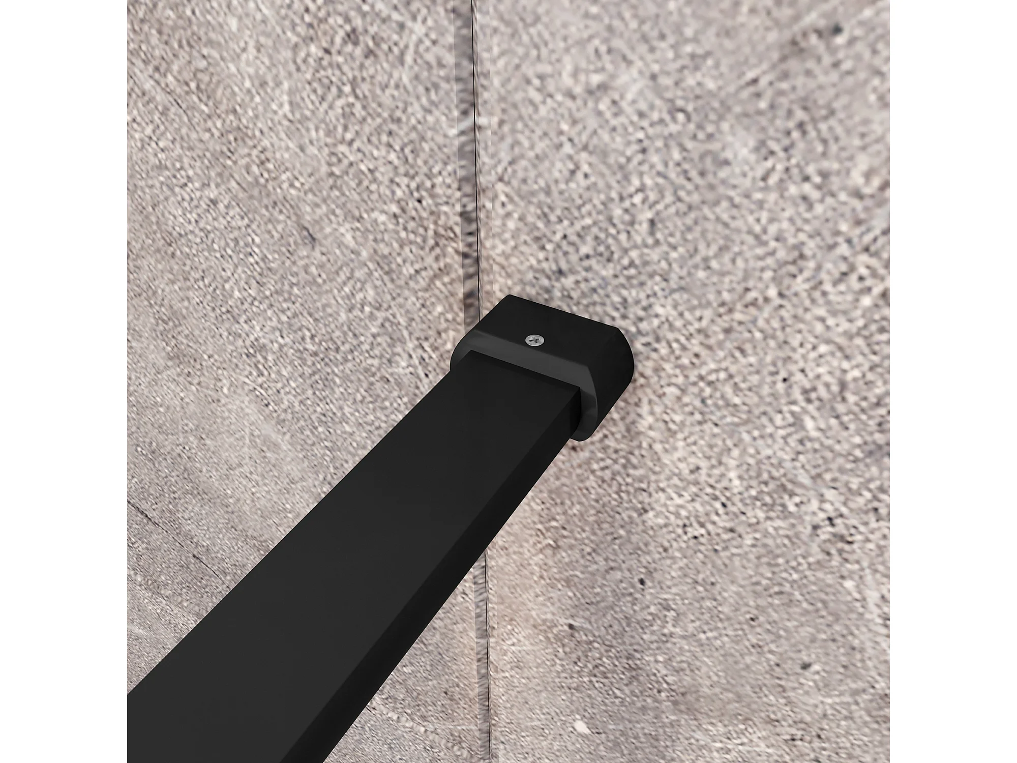 Inloopdouche-douchewand-walk in 8mm NANO EasyClean veiligheidsglas,120x200cm+N-vorm: 140 Stabilisatiestang,mat zwart aluminium profiel.