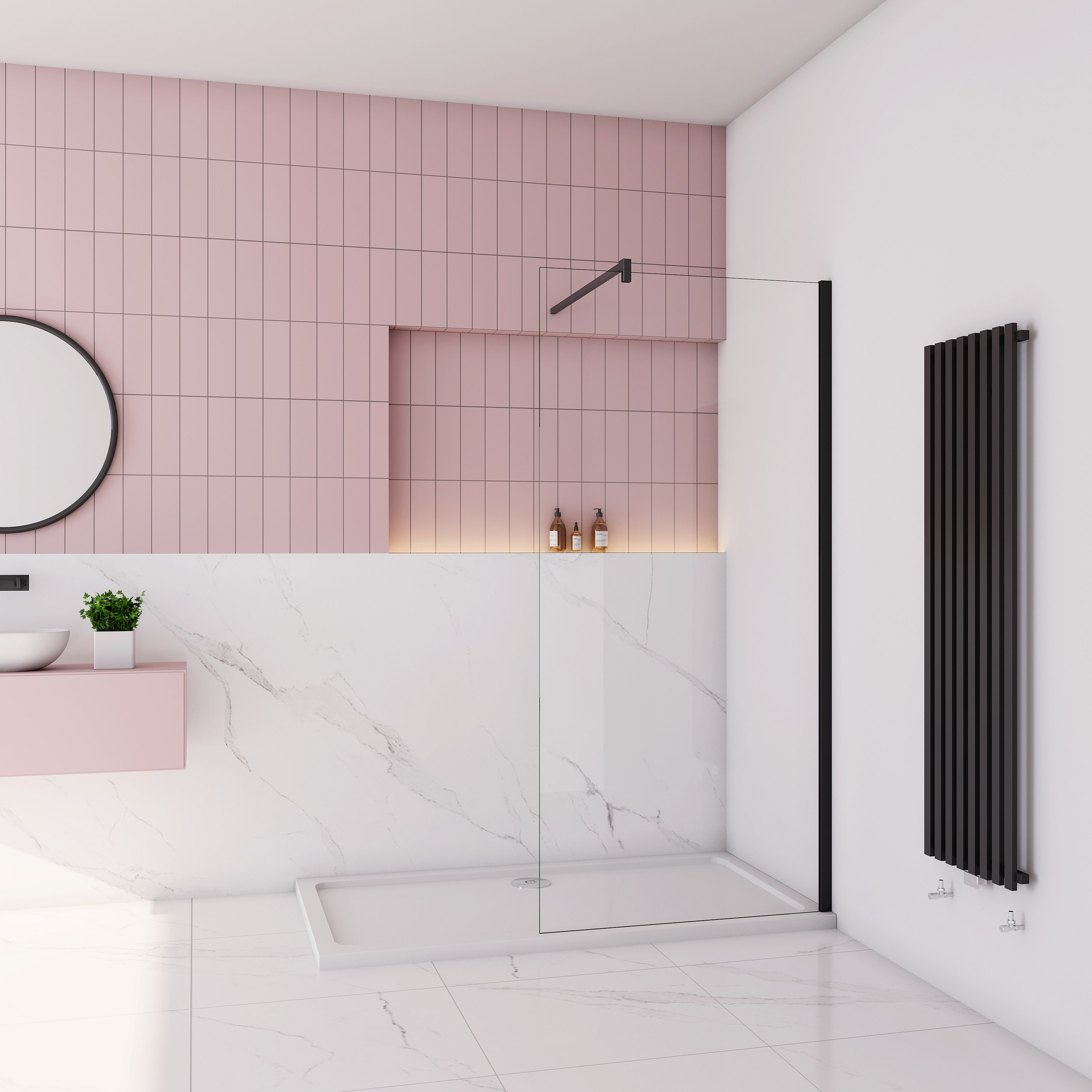 Inloopdouche-douchewand-walk in 8mm NANO EasyClean veiligheidsglas,140x200cm+70-120cm Stabilisatiestang,mat zwart aluminium profiel.
