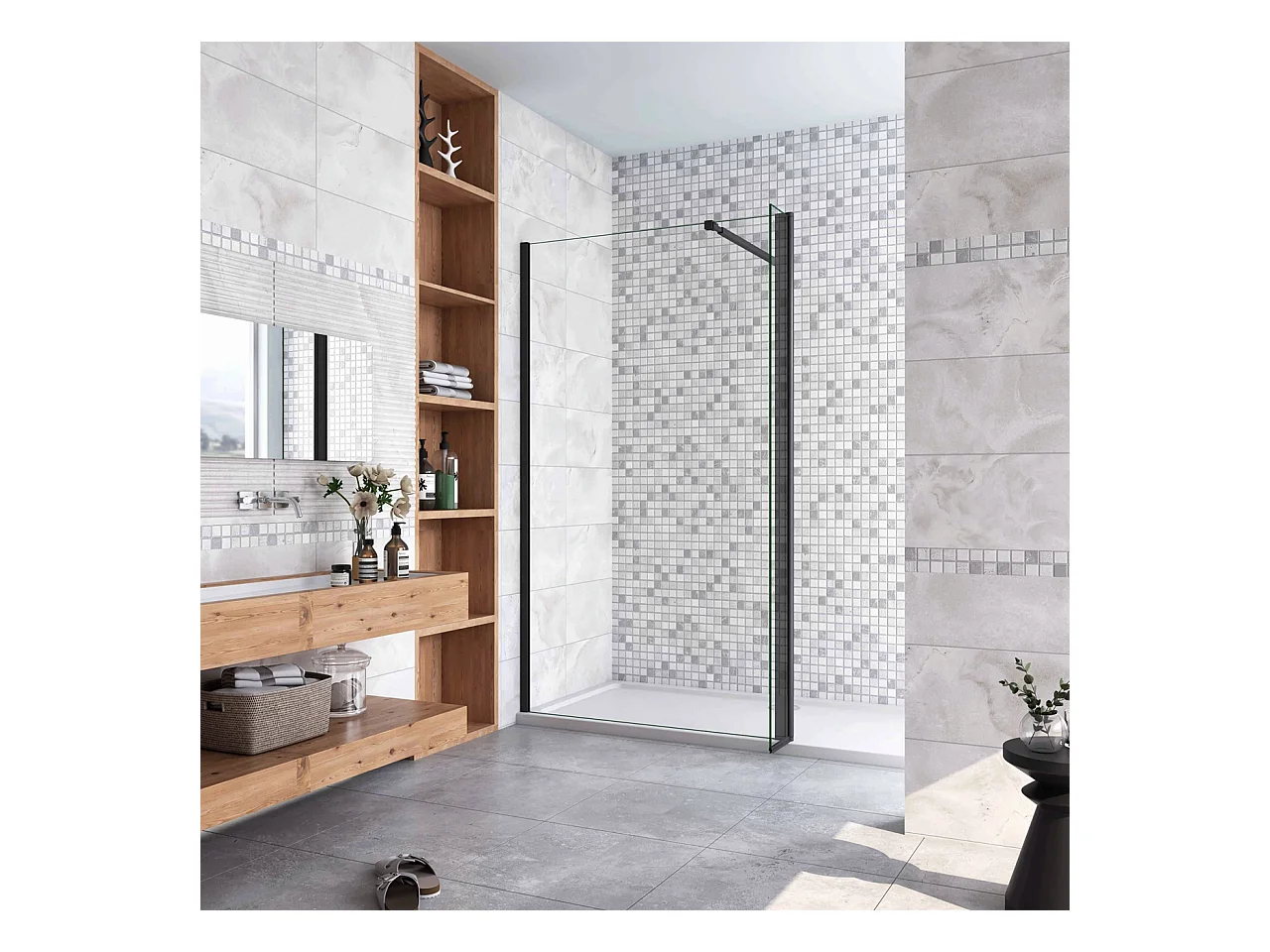 Inloopdouche-douchewand-walk in 8mm NANO EasyClean veiligheidsglas,160x200cm+30x200cm draaibaar hoekprofiel+70-120cm Stabilisatiestang,mat zwart aluminium profiel.