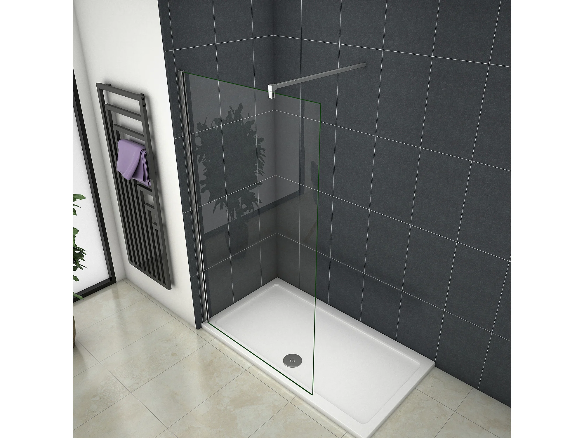 Inloopdouche-douchewand-walk in 8mm NANO EasyClean veiligheidsglas,150x200cm+F-vorm: 140 Stabilisatiestang,glanzend chroom profiel