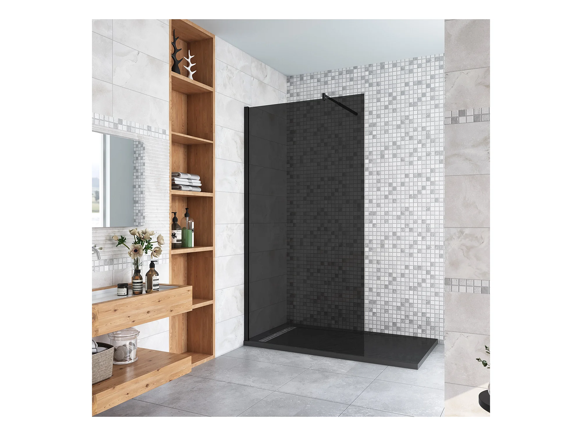 Inloopdouche 120x200cm met zwart folie,10mm NANO EasyClean veiligheidsglas,73-120cm Stabilisatiestang,mat zwart aluminium profiel.