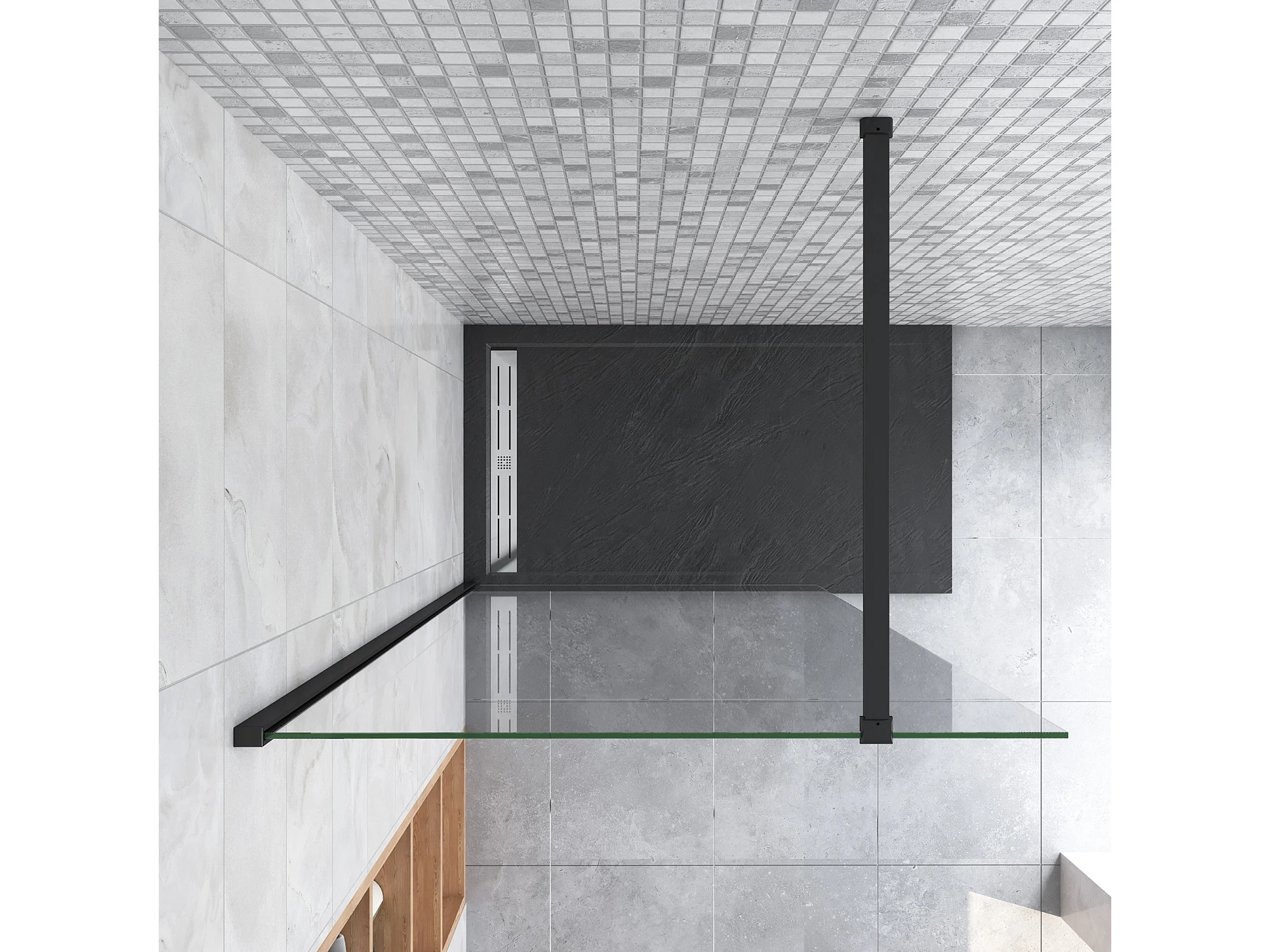 Inloopdouche met zwarte beschermfolie,80x200cm hoog,8mm EasyClean veiligheidsglas,Stabilisatiestang Norm:140cm,mat zwart aluminium profiel.