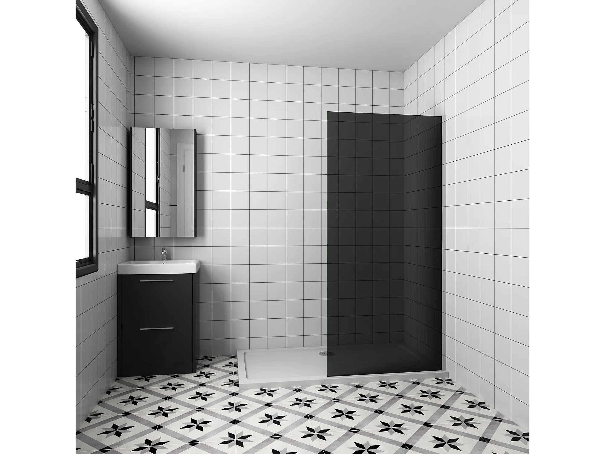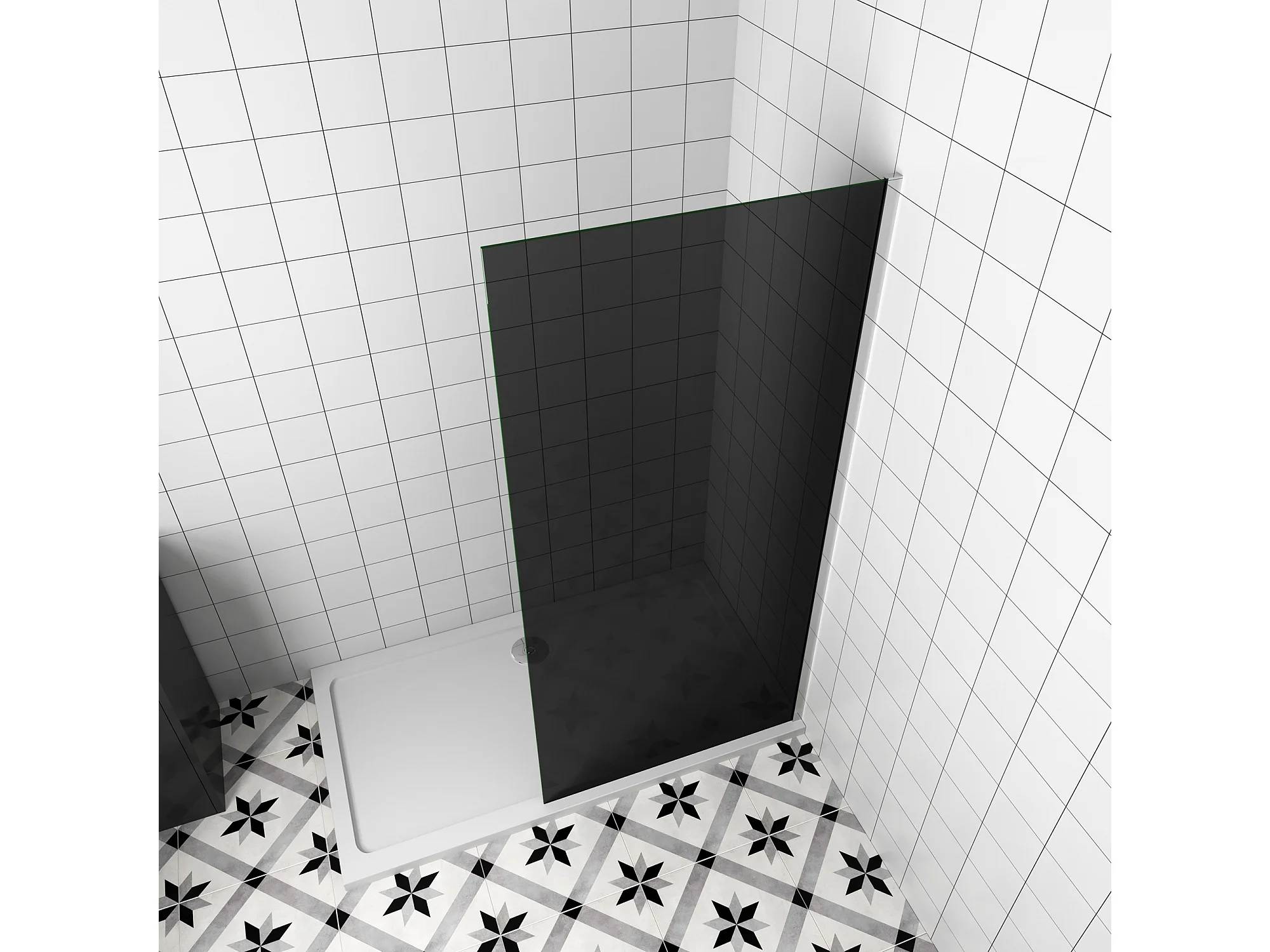 Inloopdouche met zwarte beschermfolie,90x200cm hoog,8mm EasyClean veiligheidsglas,glanzend chroom profiel