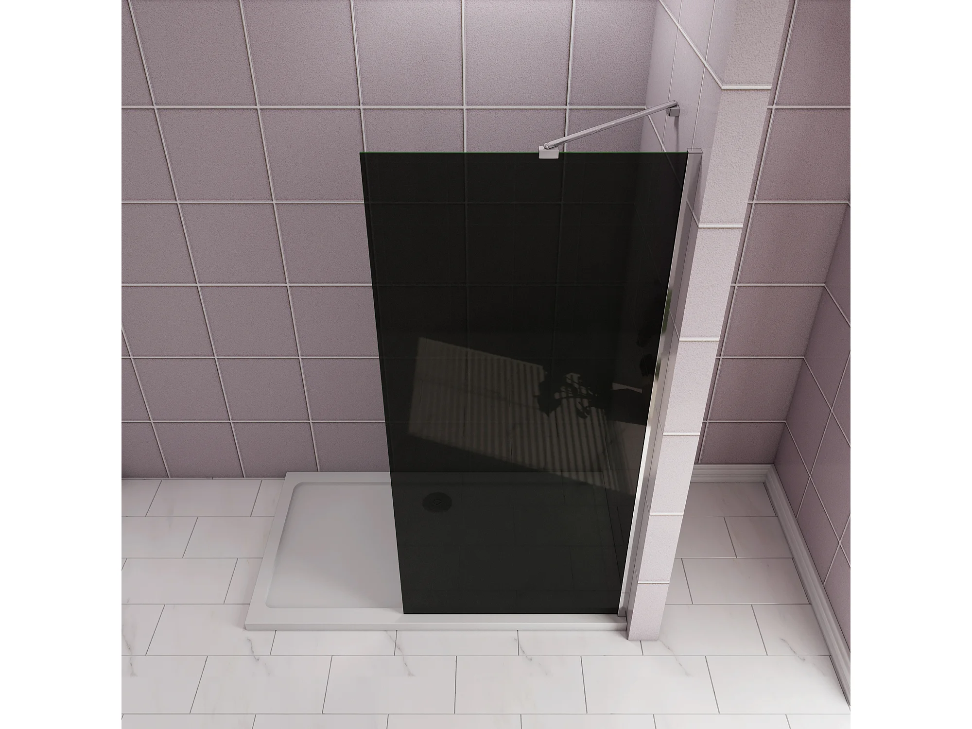 Inloopdouche met zwarte beschermfolie,90x200cm hoog,8mm EasyClean veiligheidsglas,Stabilisatiestang 45cm,glanzend chroom profiel