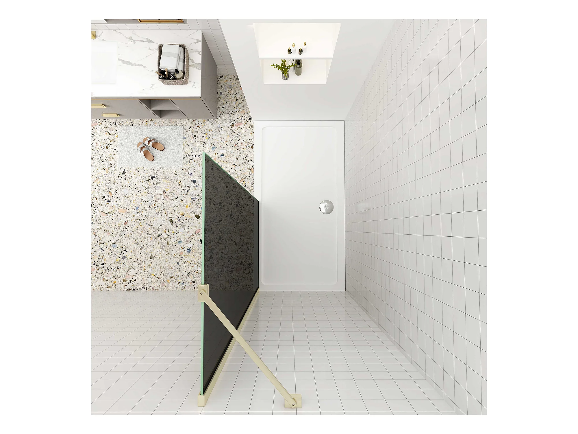 Inloopdouche goud beschermfolie,90x200cm hoog,8mm EasyClean veiligheidsglas,Stabilisatiestang 45cm,gouden profiel.