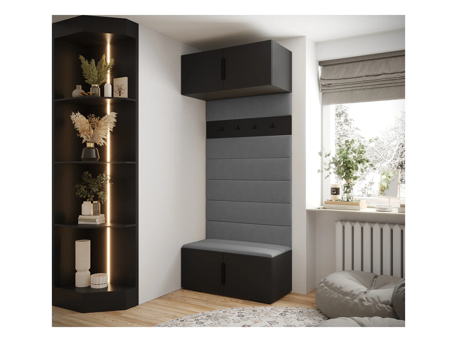 Zwarte kledingkast met 2 deuren, 1 lade, 4 haken en 1 bank, 100x30x180cm