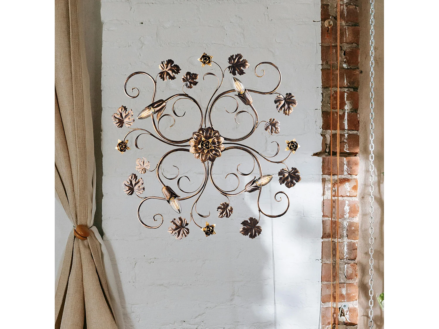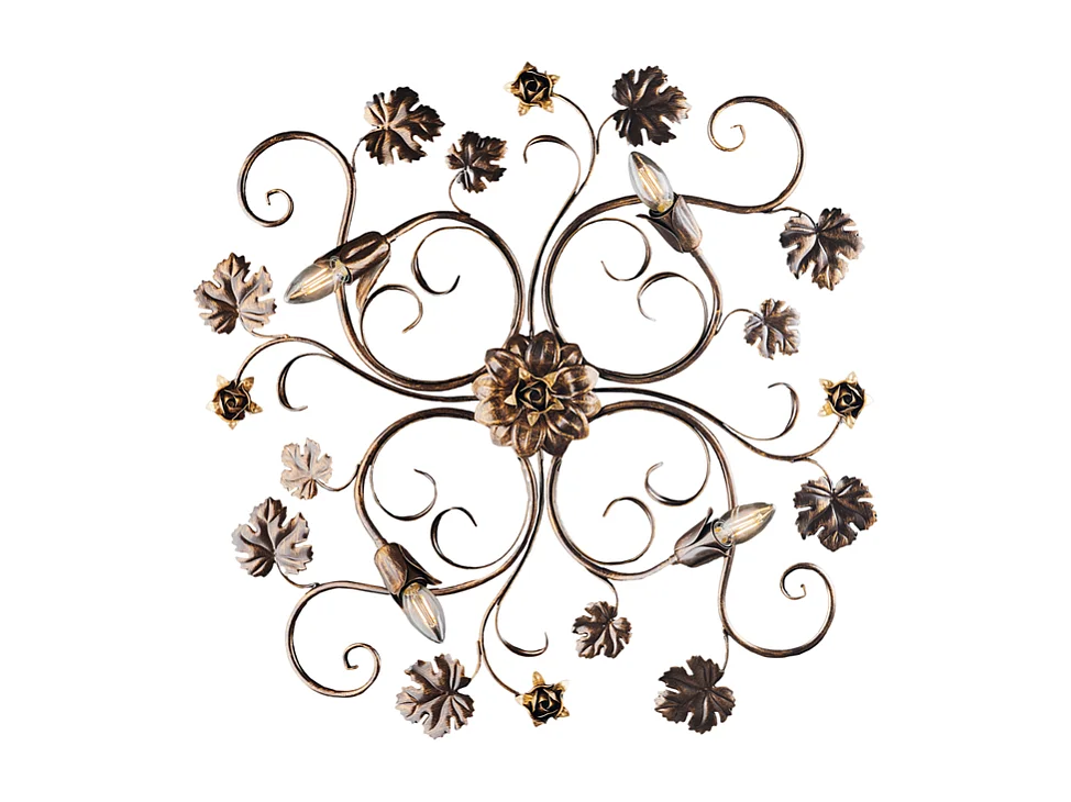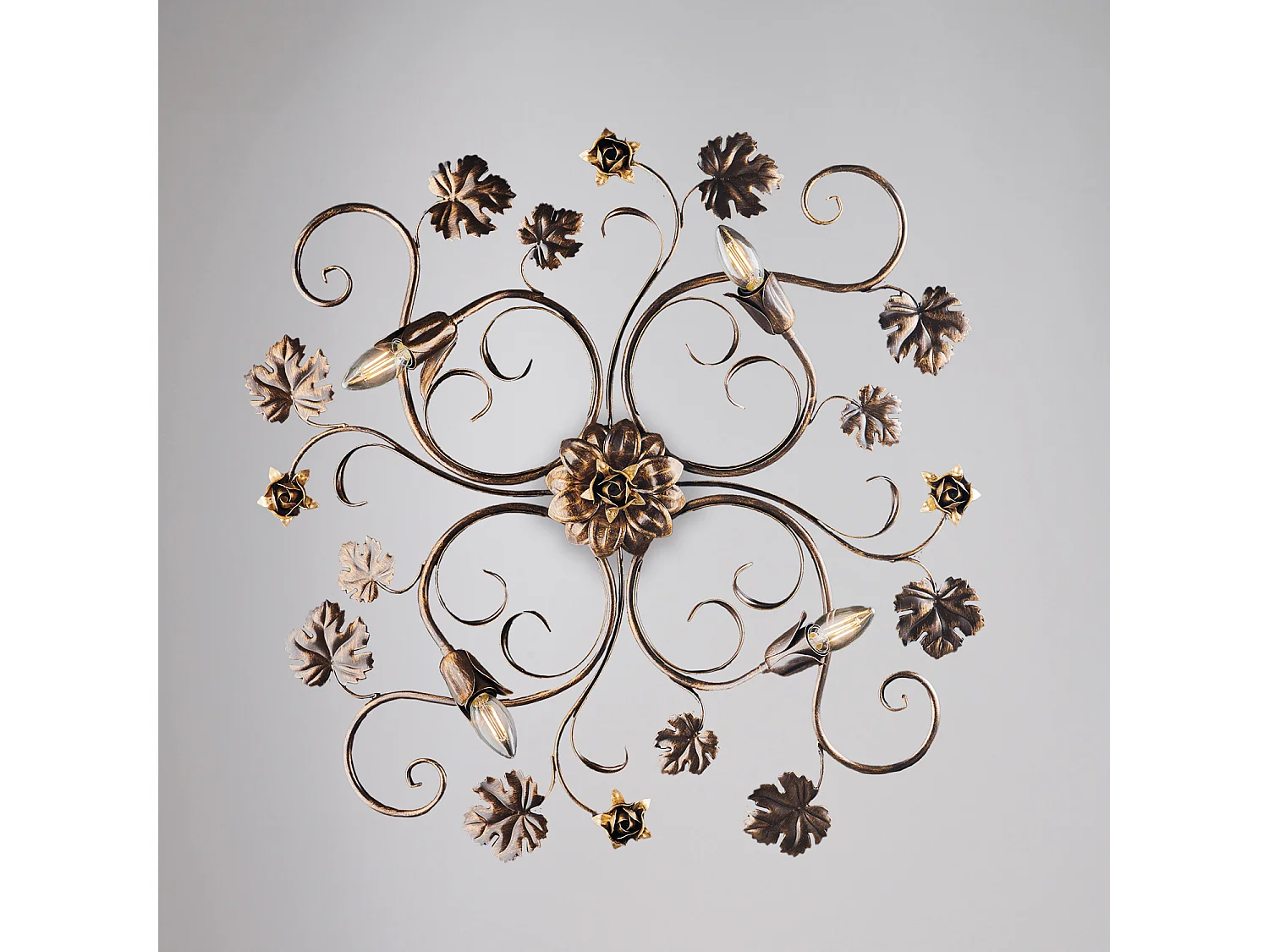 Iris Plafonnier en fer laqué marron décor or antique 4 lumières H.17 d.76 BL169-PL4-BR