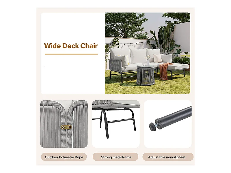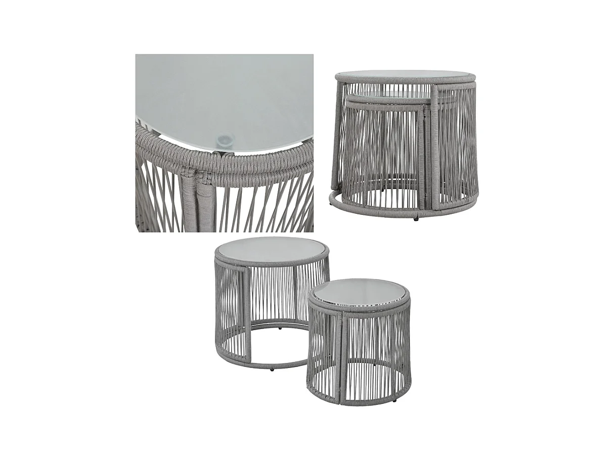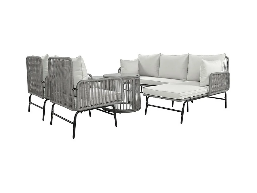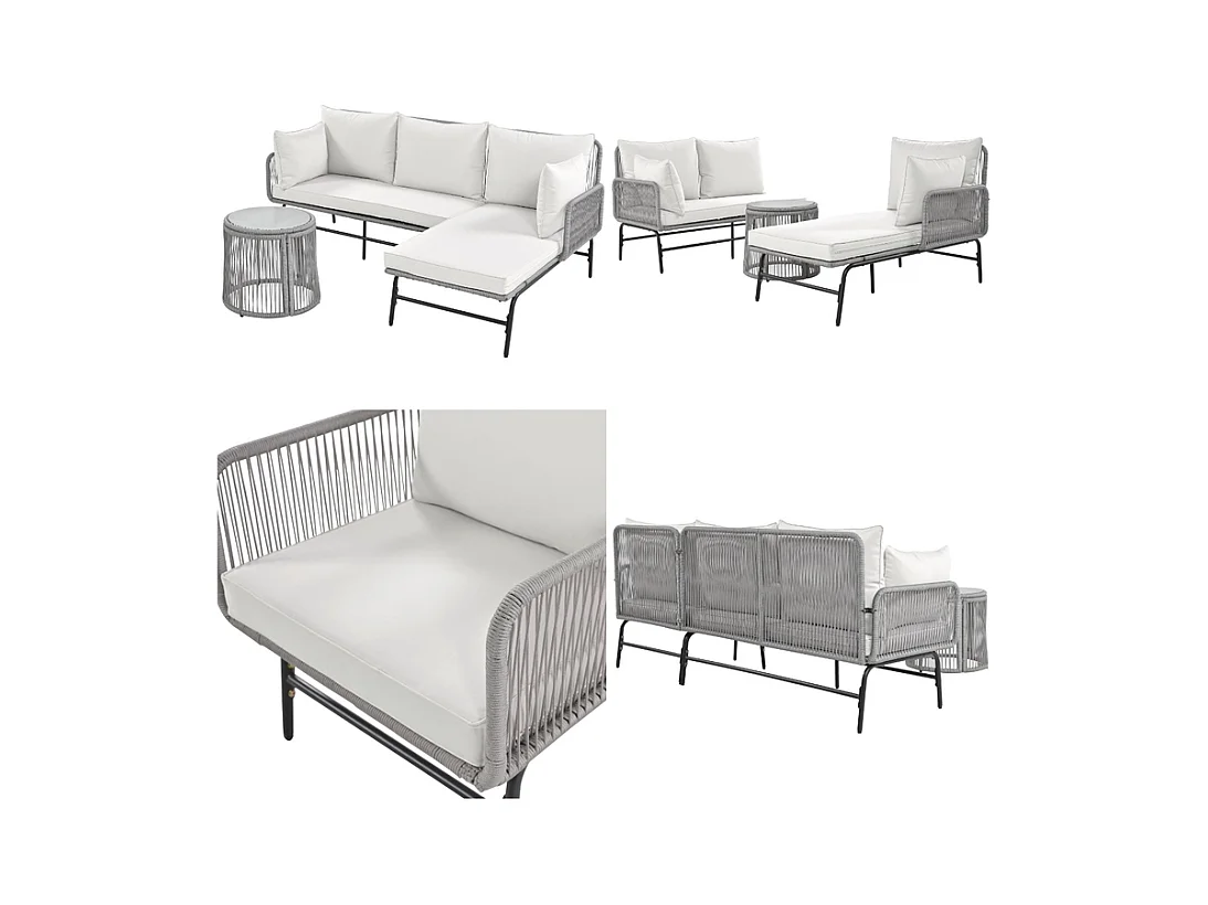 Iron and Rope tuinmeubelen - 2 banken, 2 fauteuils en 2 uitschuifbare salontafels - met alle kussens - Grijs